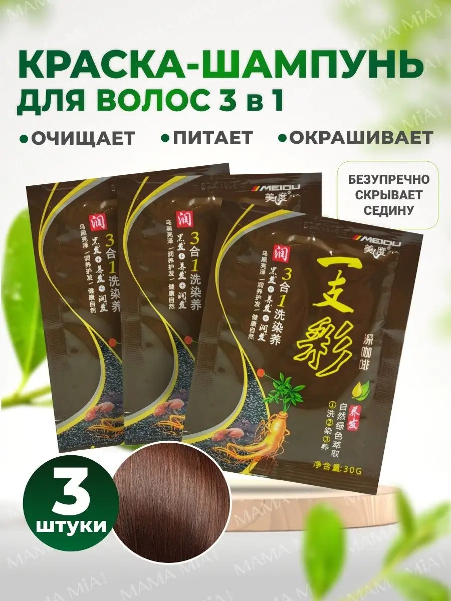 Meidu Коричневая Краска-шампунь для волос 3*30 мл