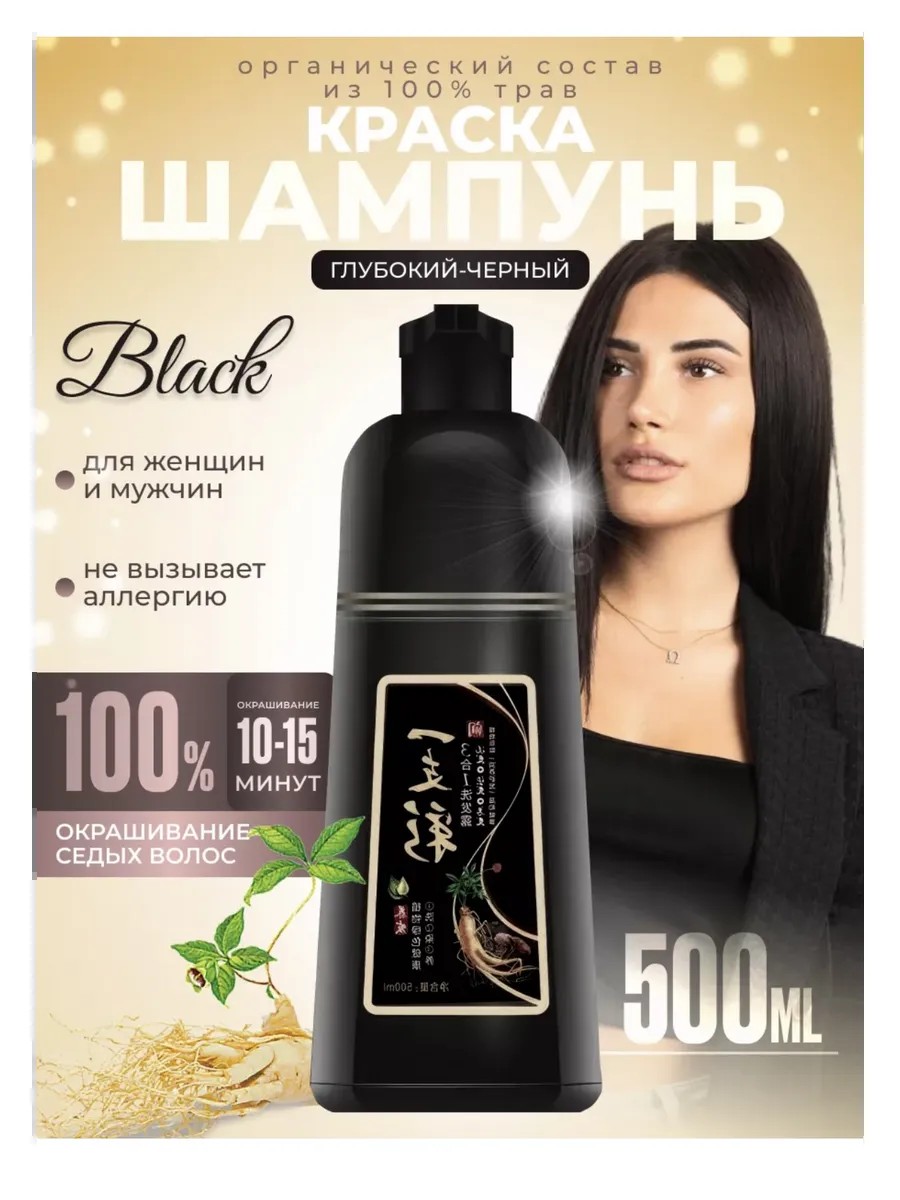 Шампунь краска для волос Глубокий Черный