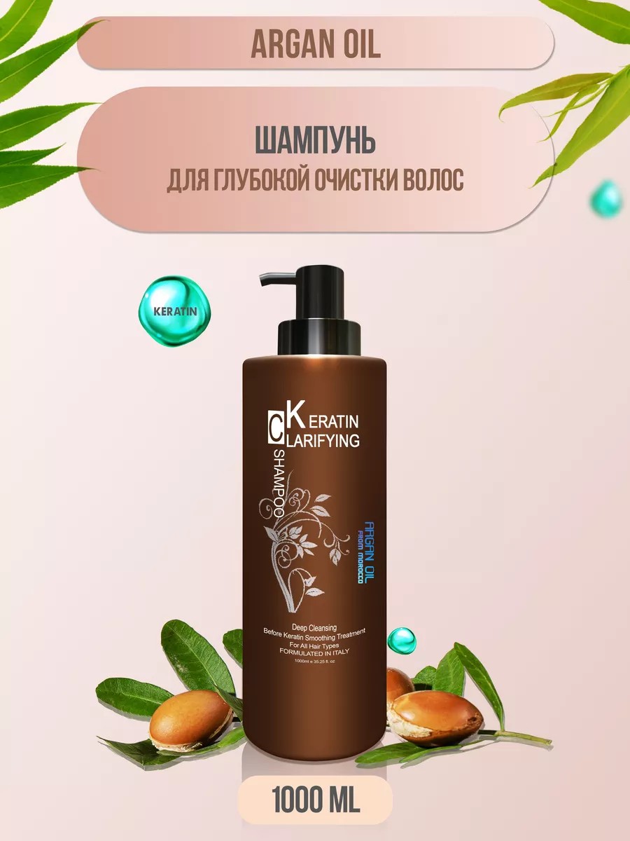 Шампунь специально разработан для удаления остатков и химических примесей перед процедурой кератирования волос. Шампунь не только очищает волосы и удаляет остаточное накапливание, но и открывает кутикулу волос, подготавливает волосы к кератиновому уходу и выпрямлению. Состав: содержит очищенную воду, кератин, масло и экстракт арганы, динатриевую соль, дистеарат глюколя, диметикон, бетаин, глицерин, аллантоин, пантенол, эфирные масла, бензиловый спирт, пиритион цинка, лаурет сульфат натрия, отдушка. Способ применения: перед кератированием промыть волосы шампунем на 2 раза (намылить – смыть, намылить и смыть). Противопоказания: индивидуальная непереносимость компонентов.