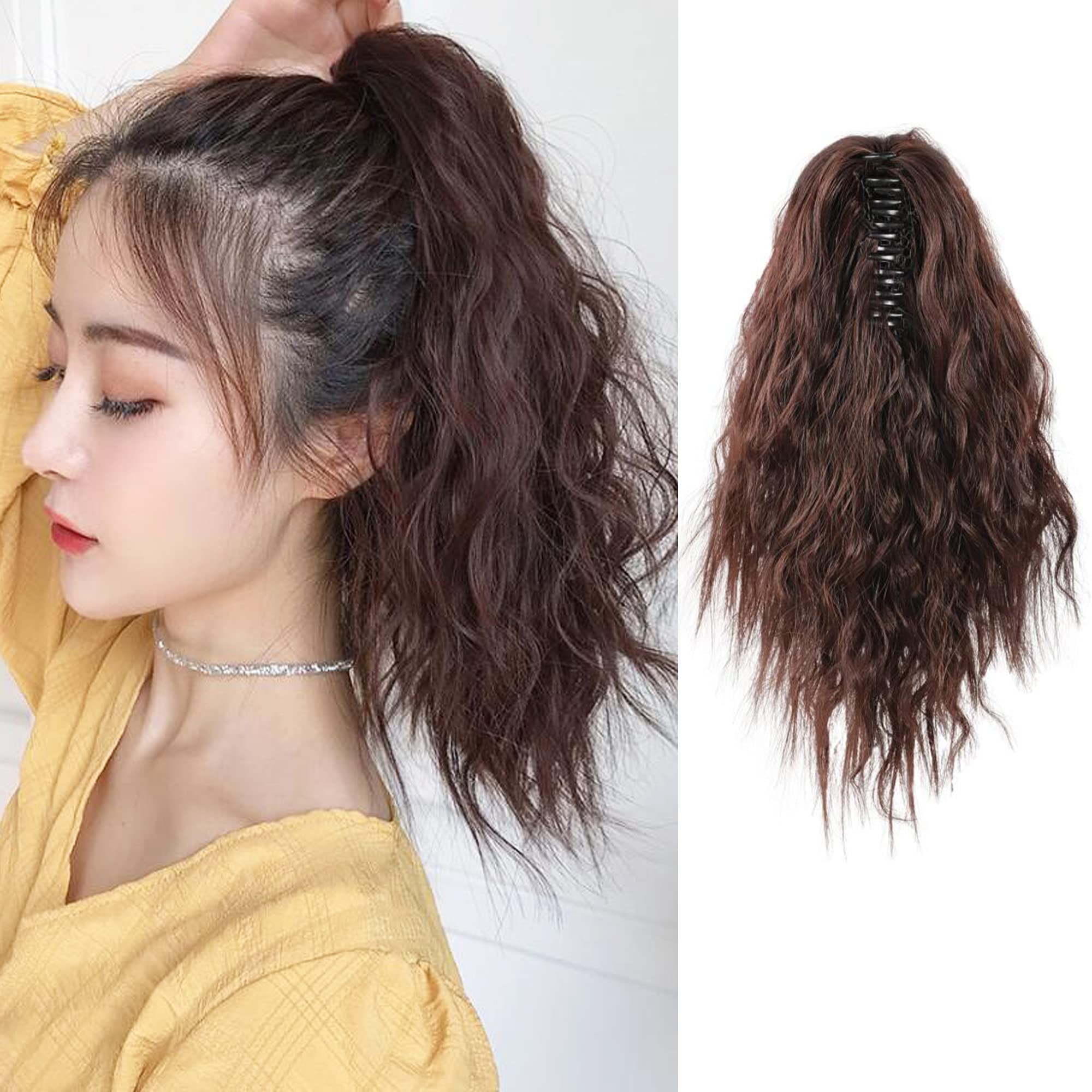 MEIRIYFA Kurze gewellte Pferdeschwanzverlängerung für Frauen, Klaue Pferdeschwanzverlängerung Clip in Haarverlängerungen Pferdeschwanz für den täglichen Partygebrauch (Dunkelbraun)
