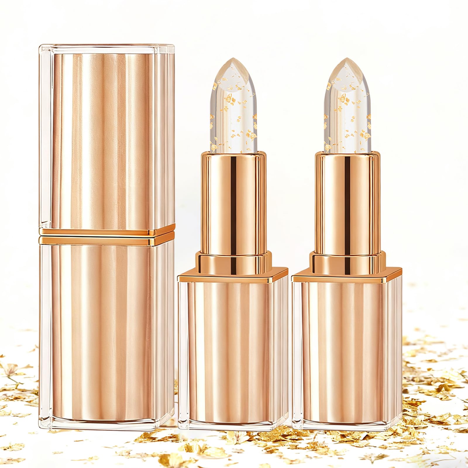 Color-changing lipstick - Sheer lipstick with gold foil - Stain-resistant - Long-lasting - Moisturizing - Lip gloss.