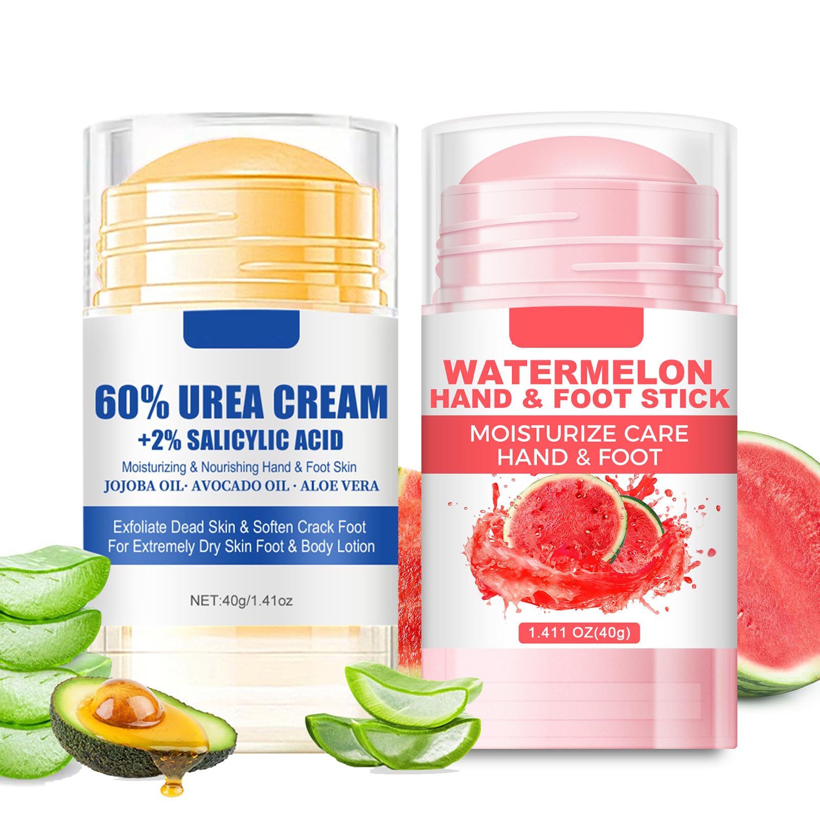 Our ure-cream for the feet contains a unique blend of nourishing and moisturizing ingredients, which penetrate deep into the underlying skin layers and immediately provide dry feet with rich moisture, relieves dryness and cracks, improves roughness. With the practical embroidery design, the Hydrating and Anti-Cracking FootCream can be applied precisely and cleanly, without leaving sticky hands, ideal for on the go and at home. It is suitable for all skin types and is particularly beneficial for people who want to intensively care for their feet and hands. Product specifications: Product name: Urea cream 60 percent and strawberry foot cream. Packaging: set of 2 sticks (40 g per stick). Active ingredients: 60 urea, aloe vera, jojoba oil, avocado oil, strawberry Smell: fresh and neutral Purpose: hand care, foot care, callus care Product features: 60 urea for deeply moisturizing. Softens the skin. Reduces dryness and protects against new crack formation. Anti-tears and anti-calluses Gentle peeling of dandruff and dead skin. Simple embroidery format for targeted use. Targeted care for rough, dry skin. Versatile for feet and hands. Fast-absorbing formula. INGREDIENTS 60 urea, aloe vera, vitamin E, strawberries, jojoba seed oil, avocado oil SAFETY WARNING For external use only See moreSafe and high-quality foot cream: Whether it is dry heels, flaky elbows or rough knees, this foot cream can provide effective care. Foot cream can be used not only for feet and heels, but also for other dry body parts such as knees, elbows and hands. Fast-absorbing moisture cream: the anti-cracking foot cream is light, flexible and non-greasy, quickly absorbed into the skin and hydrates all day long so that your feet remain cared for and protected all day long. Relieves Dry Skin: This 60 percent urea cream not only moisturizes but also gently removes old dead skin cells from the feet, reduces the build-up of dry skin and improves roughness. Foot cream for calluses promotes skin regeneration and gives your feet new vitality. Moisturizing and anti-cracking foot cream: Our very dry feet intensively hydrates dry and stressed feet with moisture and provides long-lasting hydration that quickly penetrates the skin. Callus remover: effectively moisturize and nourish the skin of hands and feet and reduce corns. Deep Moisturizing Foot Cream: The specially added moisturizing ingredients of the very dry feet foot cream can effectively improve cracked and flaky foot skin and relieve the discomfort of dryness.Urea Crème, 60 voetcrème, zeer droge voeten, ureum voetcrème, snel intrekkende, krachtige voetverzorgingscrème voor droge, gebarsten voeten, anti-eelt (80 g, watermeloen) Watermeloen 40 g (2er Pack) Onze ure-crème voor de voeten bevat een unieke mix van voedende en hydraterende ingrediënten, die diep in de onderliggende huidlagen doordringen en droge voeten onmiddellijk van rijk vocht voorzien, verlicht droogte en scheuren, verbetert de ruwheid. Met het praktische borduurontwerp kan de Hydrating and Anti-Cracking FootCream nauwkeurig en schoon worden aangebracht, zonder kleverige handen achter te laten, ideaal voor onderweg en thuis. Hij is geschikt voor alle huidtypes en is bijzonder gunstig voor mensen die hun voeten en handen intensief willen verzorgen. Productspecificaties: Productnaam: Urea crème 60 procent en aardbeienvoetcrème. Verpakking: set van 2 sticks (40 g per stick). Werkzame stoffen: 60 urea, aloë vera, jojoba-olie, avocado-olie, aardbei Geur: fris en neutraal Gebruiksdoel: handverzorging, voetverzorging, eeltverzorging Productkenmerken: 60 ureum voor diep hydraterend. Verzacht de huid. Vermindert droogte en beschermt tegen nieuwe scheurvorming. Anti-scheurt en anti-eelt Zachte peeling van roos en dode huid. Eenvoudig borduurformaat voor doelgericht gebruik. Doelgerichte verzorging voor ruwe, droge huid. Veelzijdig inzetbaar voor voeten en handen. Snel intrekkende formule. INGREDIËNTEN 60 urea, aloë vera, vitamine E, aardbeien, jojoba-zaadolie, avocado-olie VEILIGHEIDSWAARSCHUWING Alleen voor uitwendig gebruik Meer bekijkenVeilige en hoogwaardige voetcrème: of het nu gaat om droge hielen, schilferende ellebogen of ruwe knieën, deze voetcrème kan een effectieve verzorging bieden. Voetcrème kan niet alleen voor voeten en hielen worden gebruikt, maar ook voor andere droge lichaamsdelen zoals knieën, ellebogen en handen. Snel absorberende vochtcrème: de anti-scheurvoetcrème is licht, soepel en niet vettig, trekt snel in de huid en hydrateert de hele dag door zodat je voeten de hele dag verzorgd en beschermd blijven. Verlicht de droge huid: deze ureum crème 60 procent hydrateert niet alleen maar verwijdert ook voorzichtig oude dode huidcellen van de voeten, vermindert de ophoping van droge huid en verbetert de ruwheid. Voetcrème eelt bevordert de regeneratie van de huid en geeft je voeten nieuwe vitaliteit. Hydraterende en anti-krakende voetcrème: onze zeer droge voeten hydrateert droge en belaste voeten intensief met vocht en hydrateert langdurig die snel in de huid doordringt. Eeltverwijderaar: de huid van handen en voeten effectief hydrateren en voeden en de likdoorns verminderen. Diepe vochtinbrengende voetcrème: de speciaal toegevoegde vochtinbrengende ingrediënten van de voetcrème zeer droge voeten kunnen gebarsten en schilferige voethuid effectief verbeteren en het ongemak van droogte verlichten.