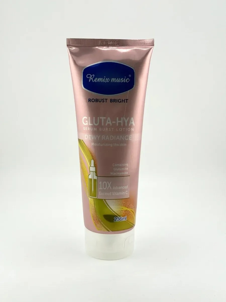 Remix Music Gluta-Hya Serum Burst Lotion is a moisturizing body lotion designed to give skin a radiant, healthy-looking complexion.