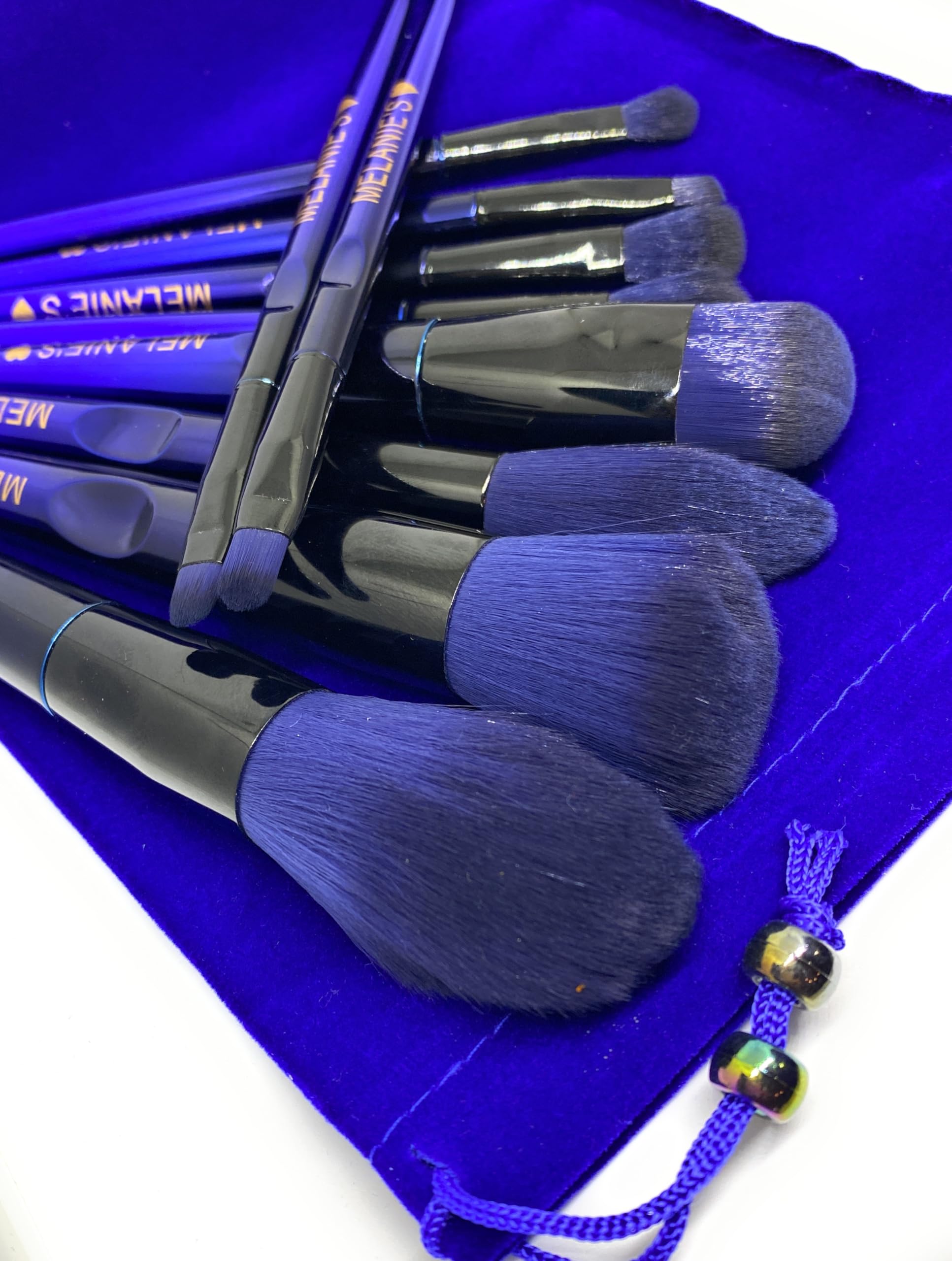 Melanie's10 pieces makeup brush set with Velvet bag. Dark Blue.