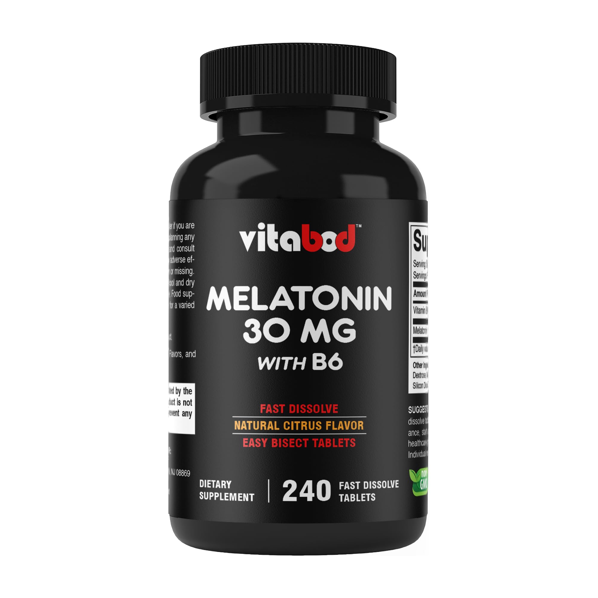 Melatonin 30 mg with Vitamin B6 240 Fast Dissolve Tablets High-Potency Sleep Support Drug-Free, Natural Citrus Flavor Vegetarian, Non-GMO, Gluten-Free 240 Count (Pack of 1)