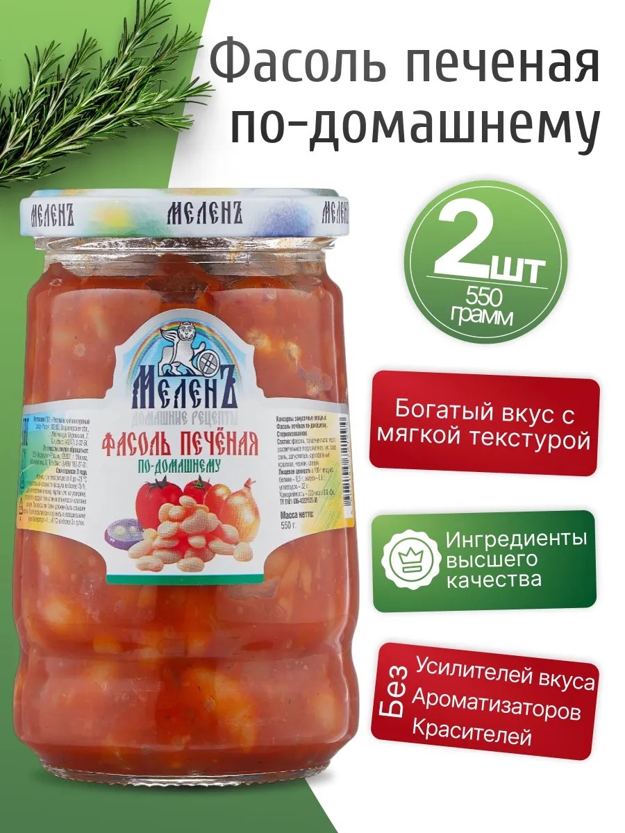 Меленъ Фасоль красная печеная по-домашнему 2шт по 550гр