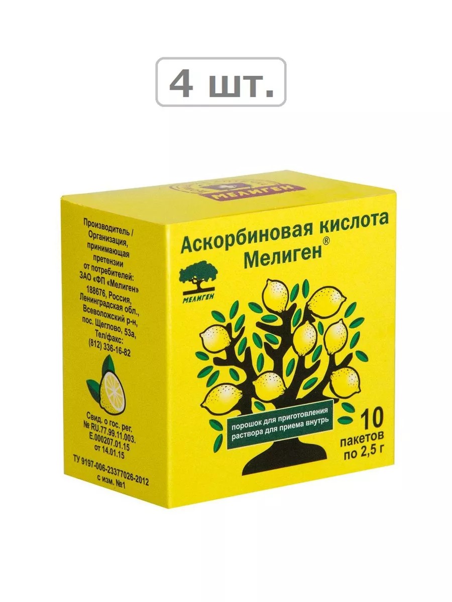 Мелиген Аскорбиновая кислота 10 пакет по 2,5 гр пор - 4 уп