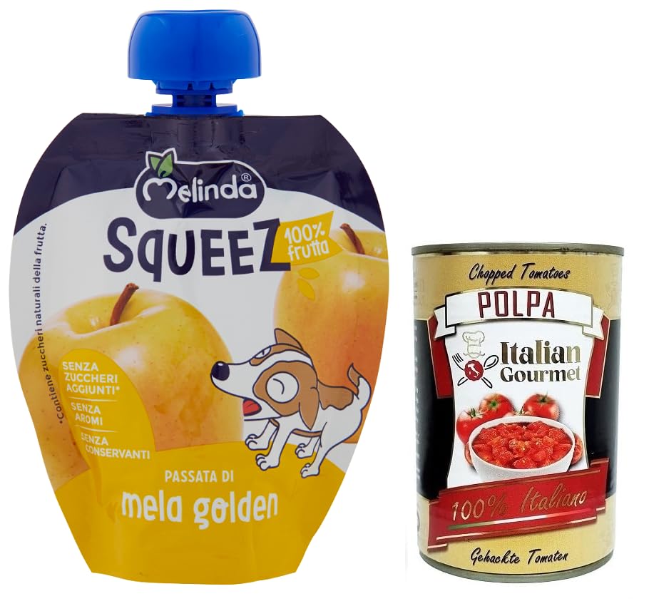 Melinda Passata di Mela Golden Squeez 100 fruit golden apple fruit puree fruit to squeeze 90 g + Italian Gourmet Polpa di Pomodoro 400 g can