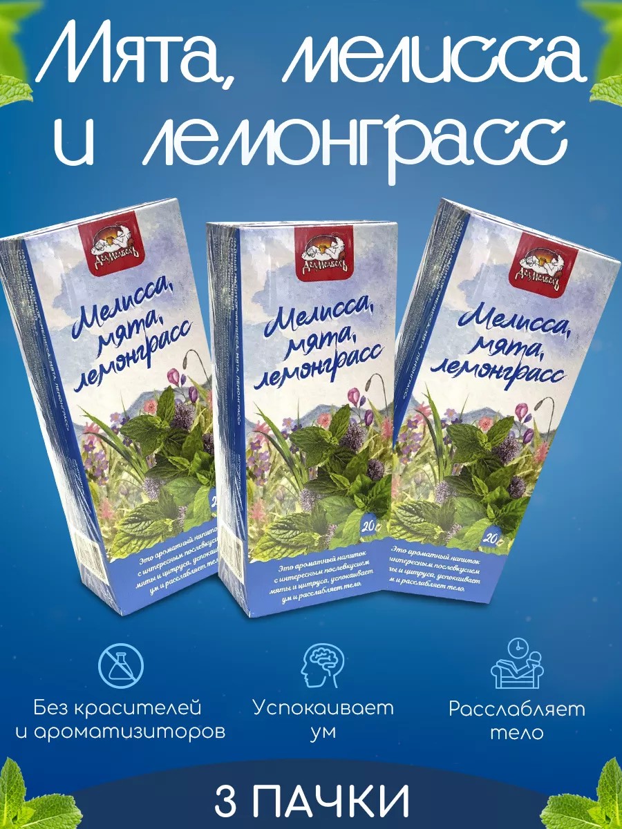Чай Мелисса, Мята, Лемонграсс , 3 пачки. ,