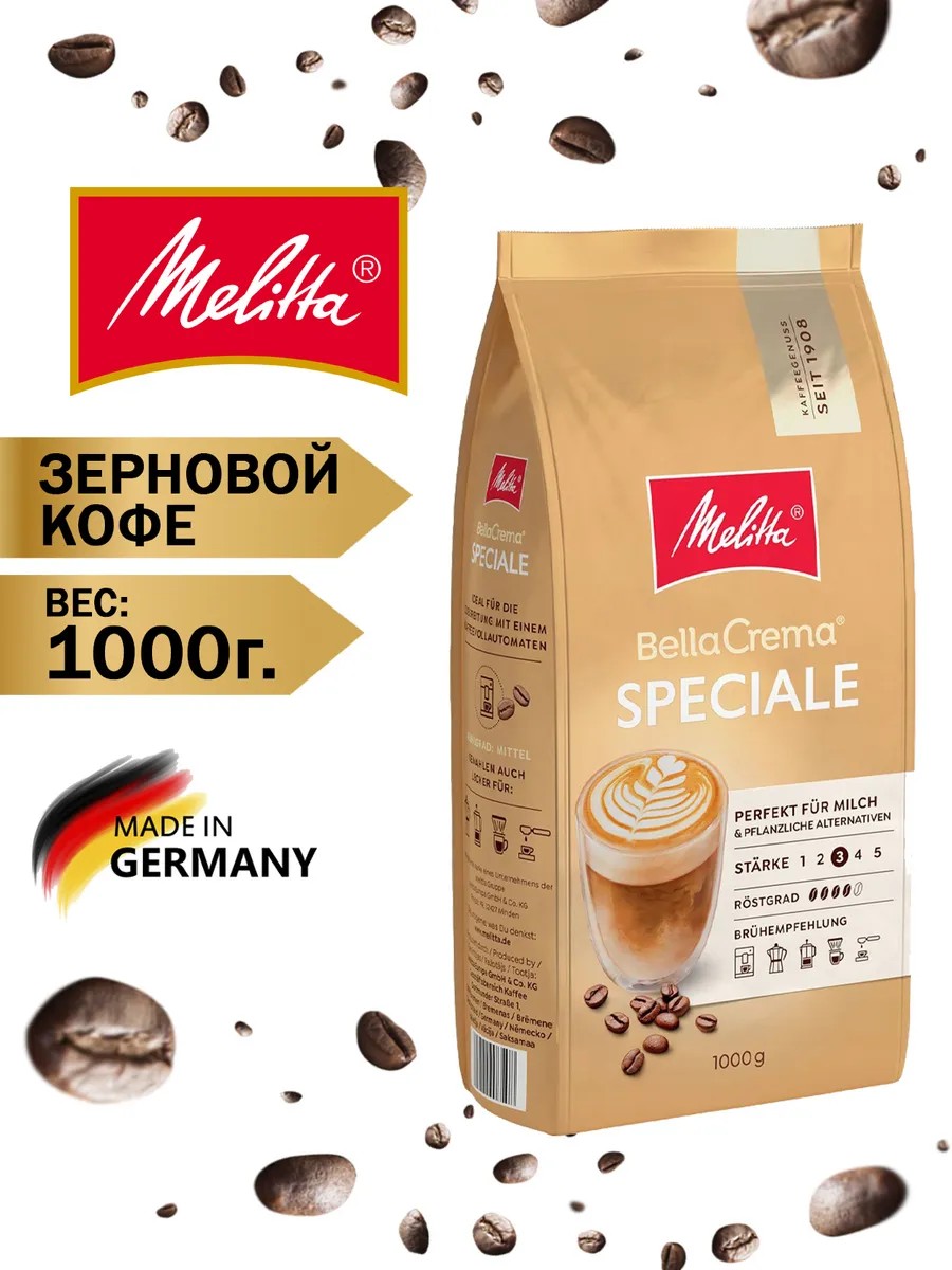 Melitta Bella Crema "Speciale" 100% Arabica coffee beans are a complex and perfectly balanced blend of superb Arabica beans, carefully selected and verified by the German company's specialists.