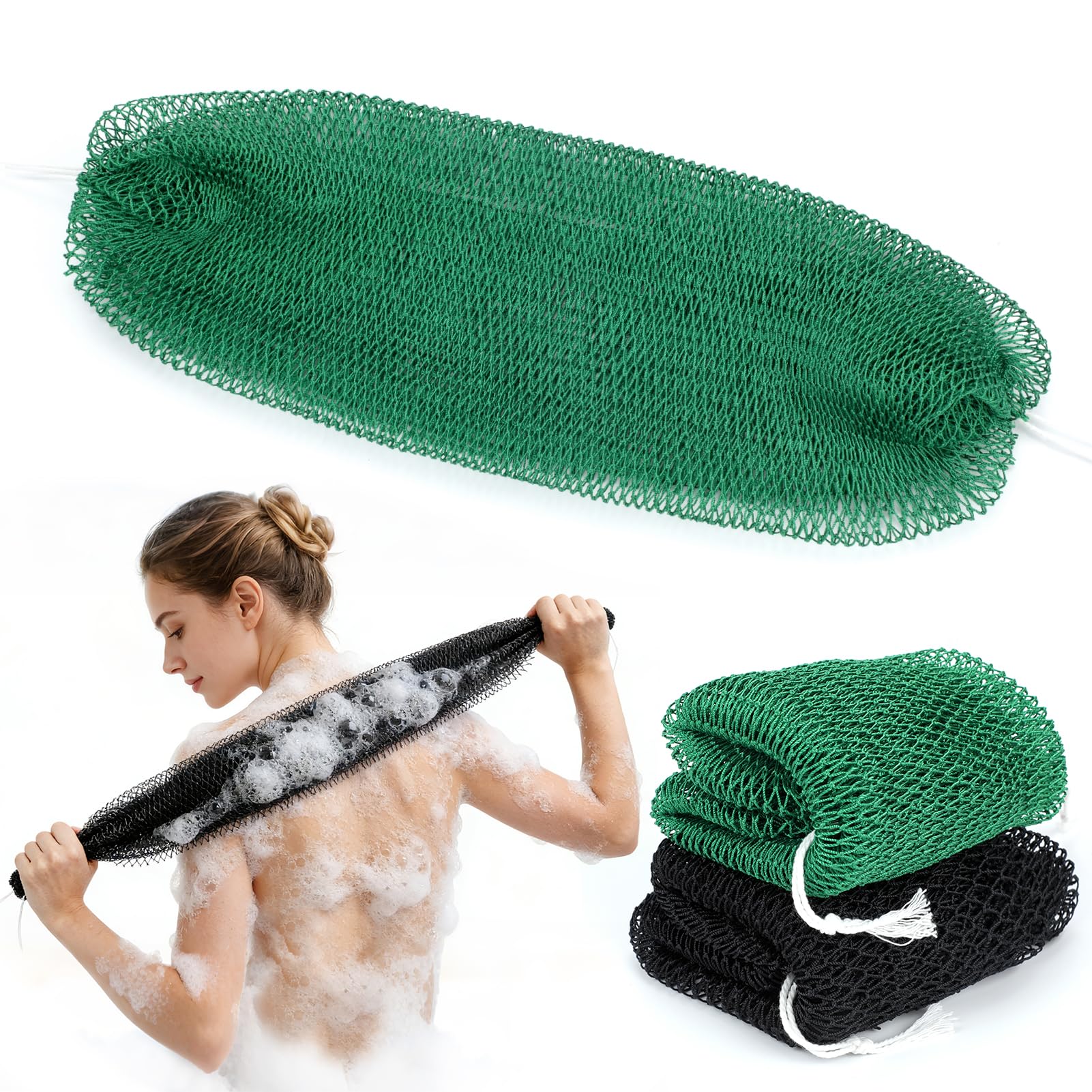 MELLIEX 2 Pi ces ponge africaine Noir Vert filet de Douche Africain ponge de Bain Gant Exfoliant Gommage Corporel Loofah Pour La Douche et Le Spa