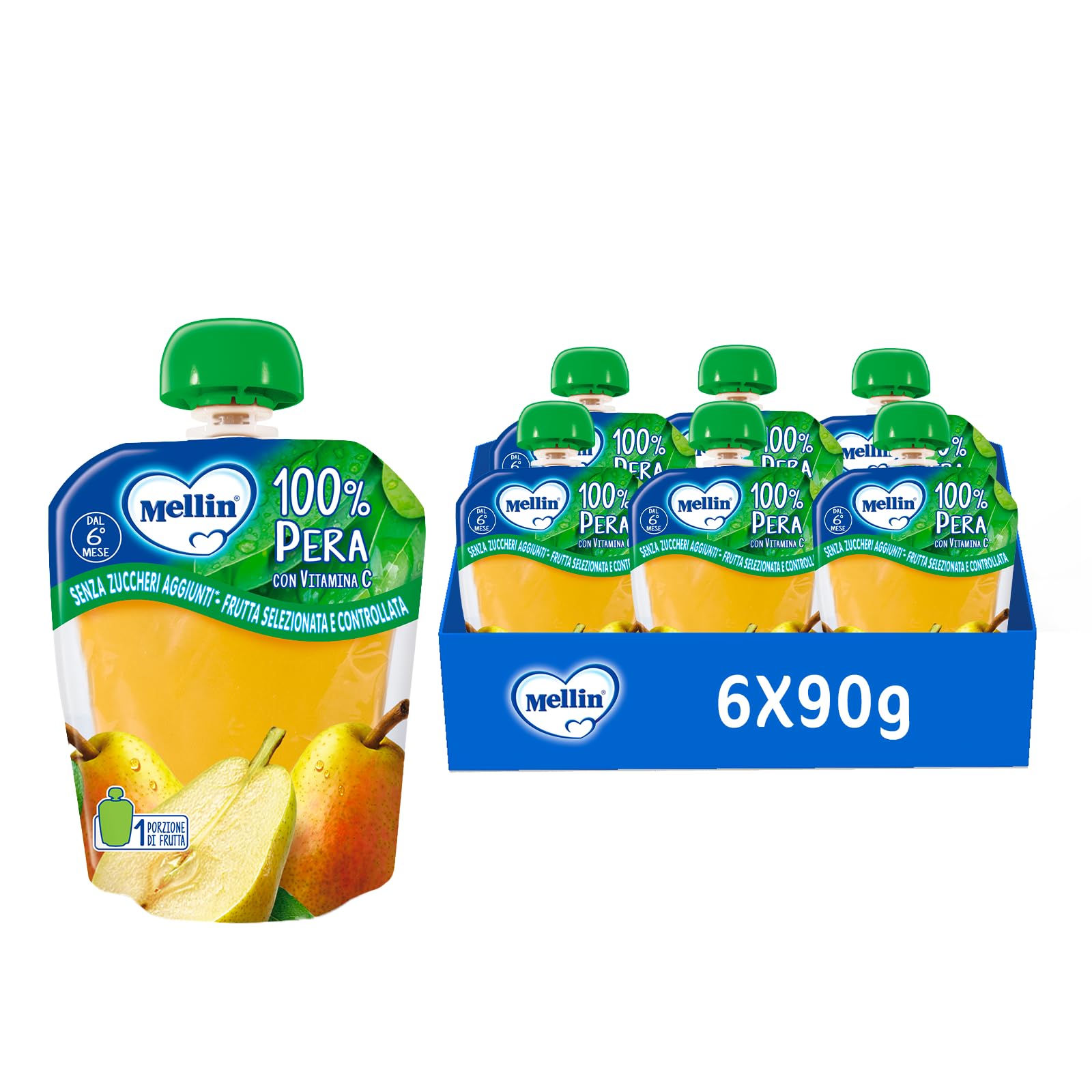 Mellin, Pouch goûter 100 poire avec vitamine C – 6 boîtes de 90 g poire 90 g (Confezione da 6)