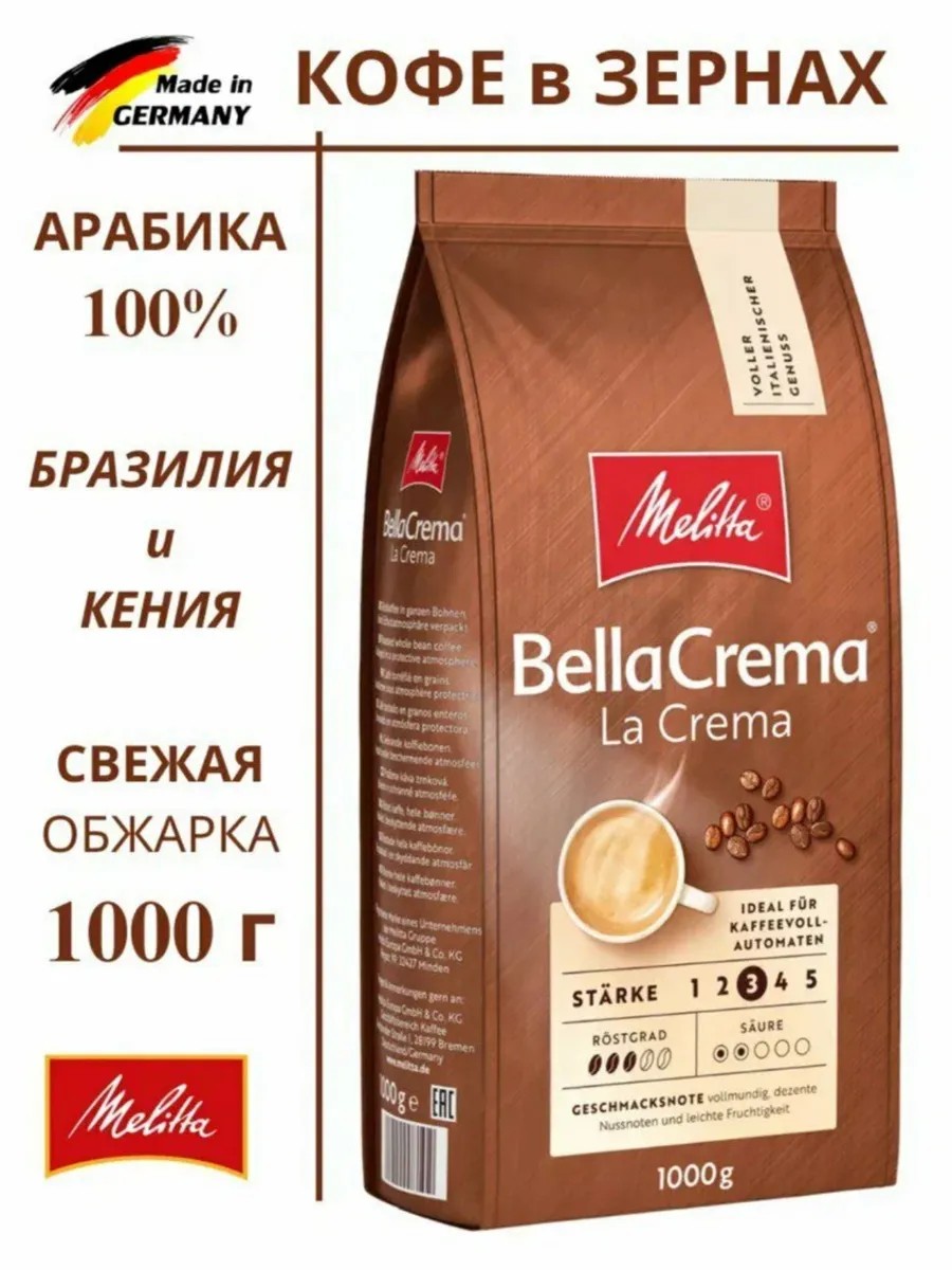 Mellitta Кофе натуральный жареный в зернах La Crema, 1000г