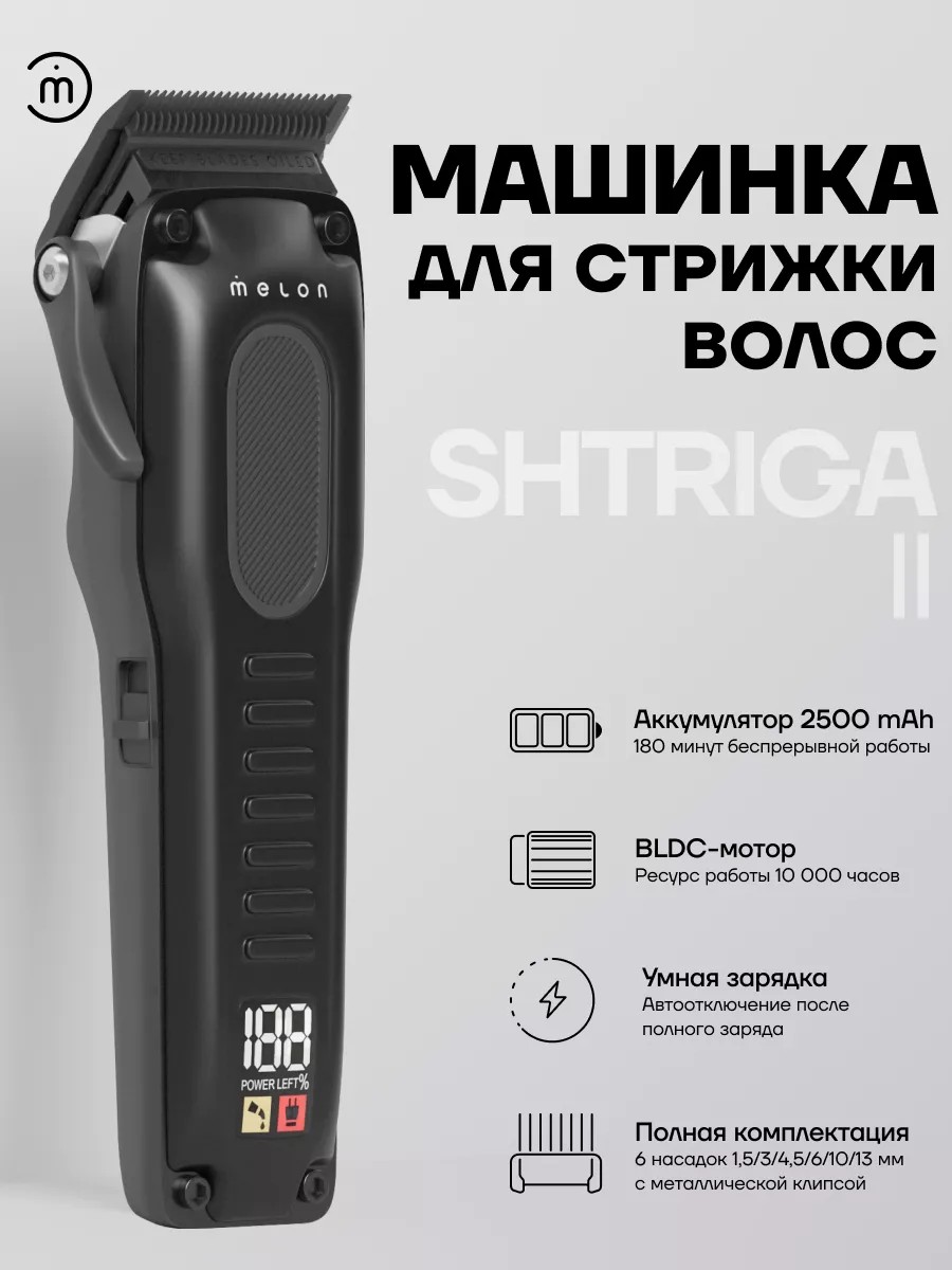 Профессиональная машинка для стрижки волос SHTRIGA ll Melon Pro имеет мощный BLDC-мотор, способный развивать 7000 оборотов в минуту и автоматически увеличивать крутящий момент, обеспечивает высокую производительность и долговечность устройства.