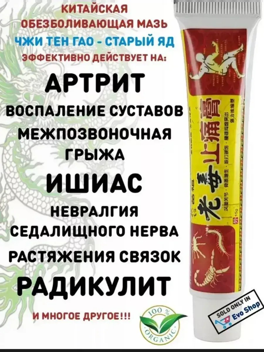 Китайская обезболивающая мазь Ужи Тен Гао (Старый яд) — эффективное средство от боли в суставах, мышцах и спине. Помогает при артрите, радикулите, межпозвоночной грыже, ишиасе и других воспалительных заболеваниях. Быстро снимает воспаление, возвращает подвижность, устраняет дискомфорт. Идеально подходит для спортсменов, людей с активным образом жизни и возрастных пациентов. Натуральный состав и проверенное китайское качество.Камфора – снимает боль, усиливает кровообращение, охлаждает.