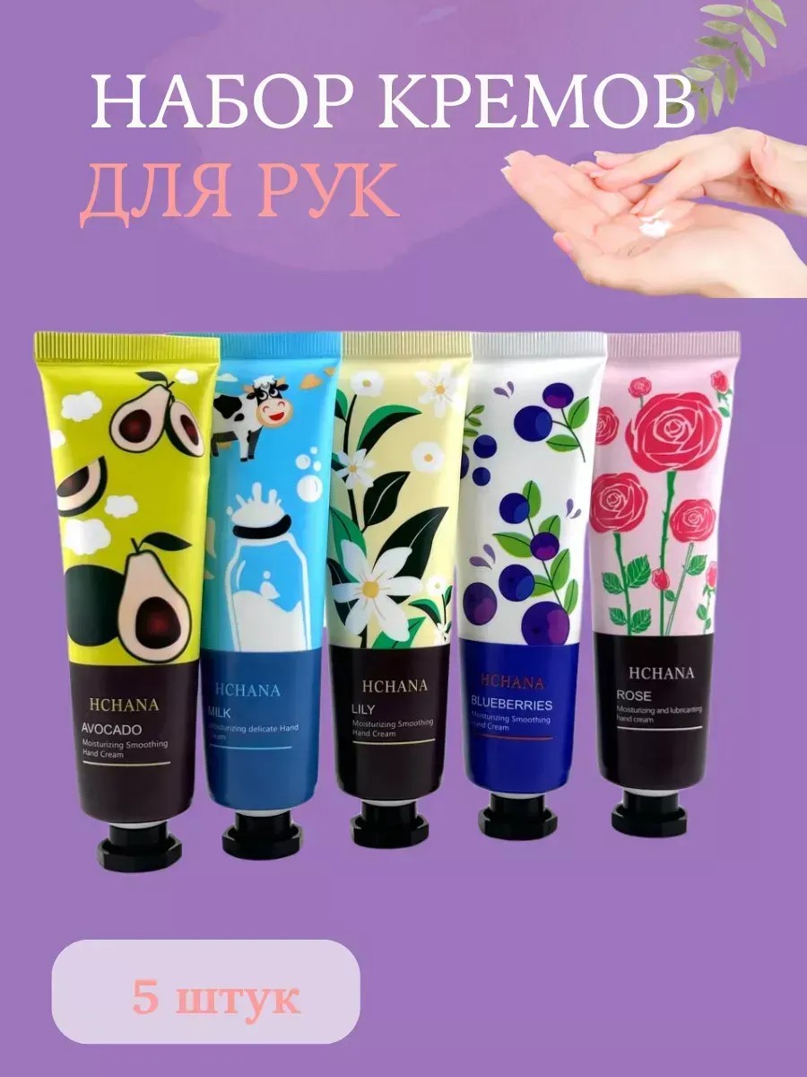 Набор кремов входят экстракты авокадо, молоко ,гардения,роза,черника а также глицерин результаты Вас удивляает! Авокадо увлажняет, восстанавливает и нежно заботится о коже Ваших рук. Черника увлажняет, смягчает и нежно заботится о коже Ваших рук. Молоко увлажняет и удерживает влагу внутри. Отбеливает кожу рук. Гардения увлажняет и восстанавливает кожу. Нежно ухаживает за чувствительными ручками. Роза увлажняет кожу, защищает от потери влаги, блокируя её испарение. Мягко оберегает нежную кожу рук. Содержит растительные и фруктовые экстракты. Нежная текстура легко распределяется, не оставляя липкой пленки. Увлажняет и смягчает кожу рук. Всегда нежные рука независимо от время года и холодные погоды! Крем подходит так же для лица.