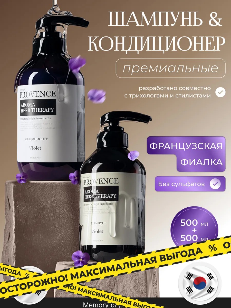Ощути аромат путешествия в PROVENCE – сладкая и терпкая фиалка, которая привнесет приятное волнение и предвкушение в повседневную жизнь с забтой о красоте и здоровье ваших волос. Шампунь + кондиционер "Memory of PROVANCE Violet" специально разработаны для поддержания естественного уровня рН кожи головы и подходят для ежедневного использования. Состав, в основе которого 28 растительных компонентов и натуральная моющая основа, деликатно очищают, сохраняя гидролипидный барьер кожи. Ферментированный экстракт соевых бобов восстанавливает и поддерживает здоровый микробиом кожи головы, предотвращая появление зуда и перхоти. Растительные экстракты мгновенно успокаивают кожу и уменьшают раздражение, а масла – питают, увлажняют и защищают от механических повреждений. После всего лишь одного применения вы заметите, что волосы не только выглядят ухоженными, но и лучше поддаются укладке. Способ применения: нанесите на влажные волосы и равномерно распределите по всей длине, тщательно смойте теплой водой. Меры предосторожности использования профессиональной уходовой косметики: только для наружного применения. Возможна индивидуальная непереносимость компонентов. В случае раздражения прекратить использование. Избегать попадания в глаза, при контакте промыть водой. Условия хранения: хранить в недоступном для детей месте. Хранить при температуре от +1°C до +30°C. Избегать попадания прямых солнечных лучей.