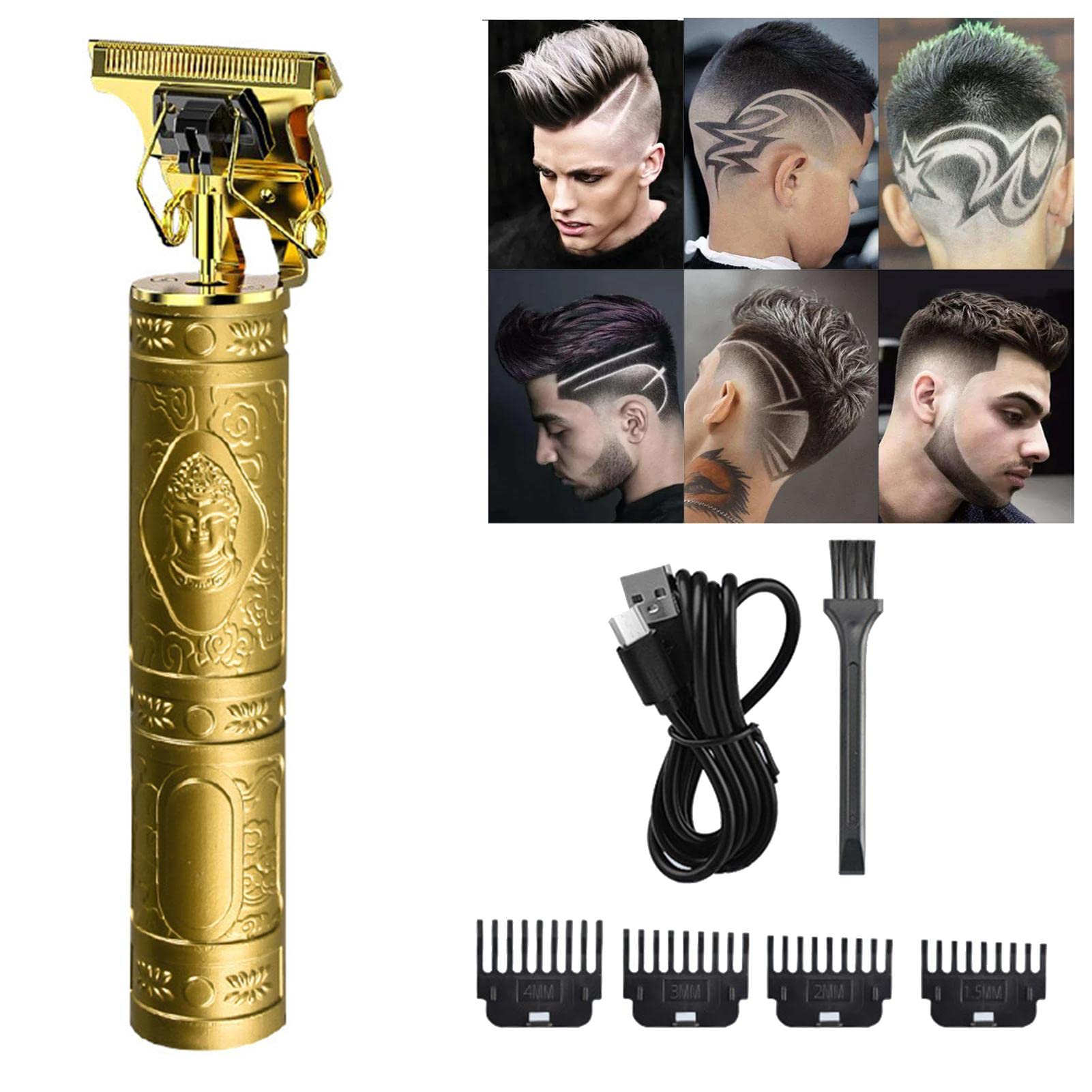 ✓ EASY TO USE: The strong, easy to operate clipper allows even beginners to use it at home, so you can easily cut your hair at home. It is durable and safe to hold in your hand. ✓ ELEGANT APPEARANCE: Our clipper is suitable for travel and business trips, cylindrical body for comfortable grip, lightweight and luxurious design, smooth texture, elegant appearance. It provides an easier, safer, more comfortable operation and maximizes user comfort. ✓ LONG BATTERY LIFE: We've designed a trimmer with a powerful rotating motor that cuts hair through noise less than 55 decibels. Up to 2.5 hours of battery life and can be charged and wireless. Easy to install: We design a trimmer with 4 attachment combs such as 1.5mm, 2mm, 3mm, and 4mm. It also comes with a USB cable and cleaning brush, so you can change it to different comb or use it according to your personal needs. ✓ SPECIAL DESIGN: This upgraded trimmer with razor sharp stainless steel T blade is helpful for sharp, detailed lines because the precision T blade allows for a very tight cut with constant speed technology.