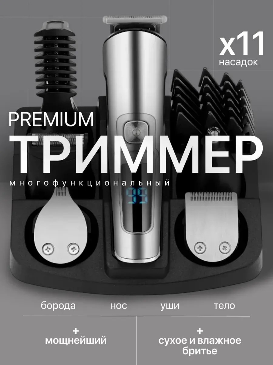 | Package contents | Body attachment - 1 pc; Instructions in Russian - 1 pc; Shaving attachment - 1 pc; Edging attachment - 1 pc; Trimmer attachment for hair cutting - 1 pc; Charging cable - 1 pc; Nose and ear attachment - 1 pc; Cleaning brush - 1 pc; Length adjustment attachments - 5 pcs; Hair trimmer - 1 pc; Comb - 1 pc |