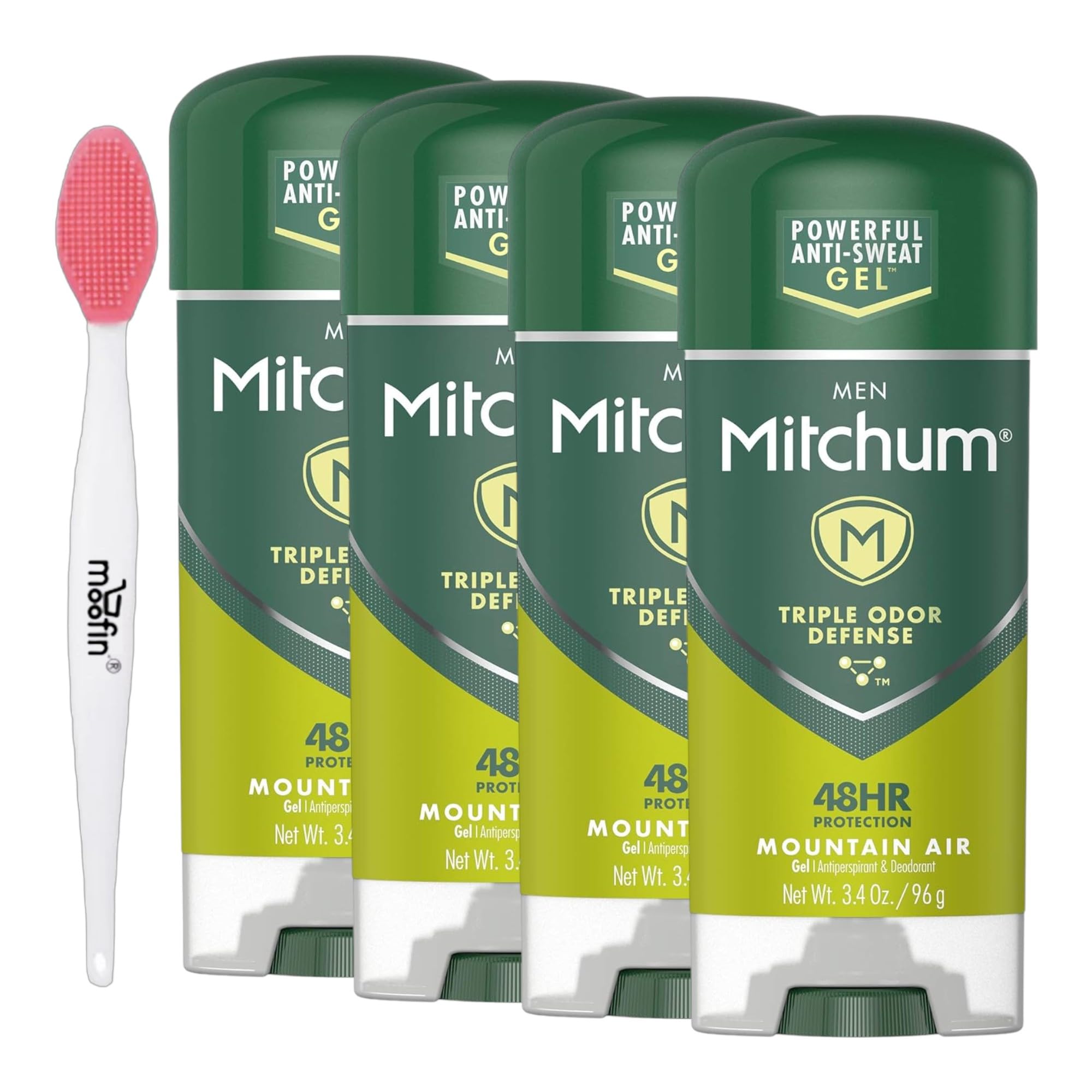 Men's Deodorant Antiperspirant Gel Stick Mountain Air 48-Hour Triple Odor Defense Alcohol-Free Quick-Dry Formula Bundle with Moofin Nose Cleaning Brush Fresh Scent (Pack of 4)