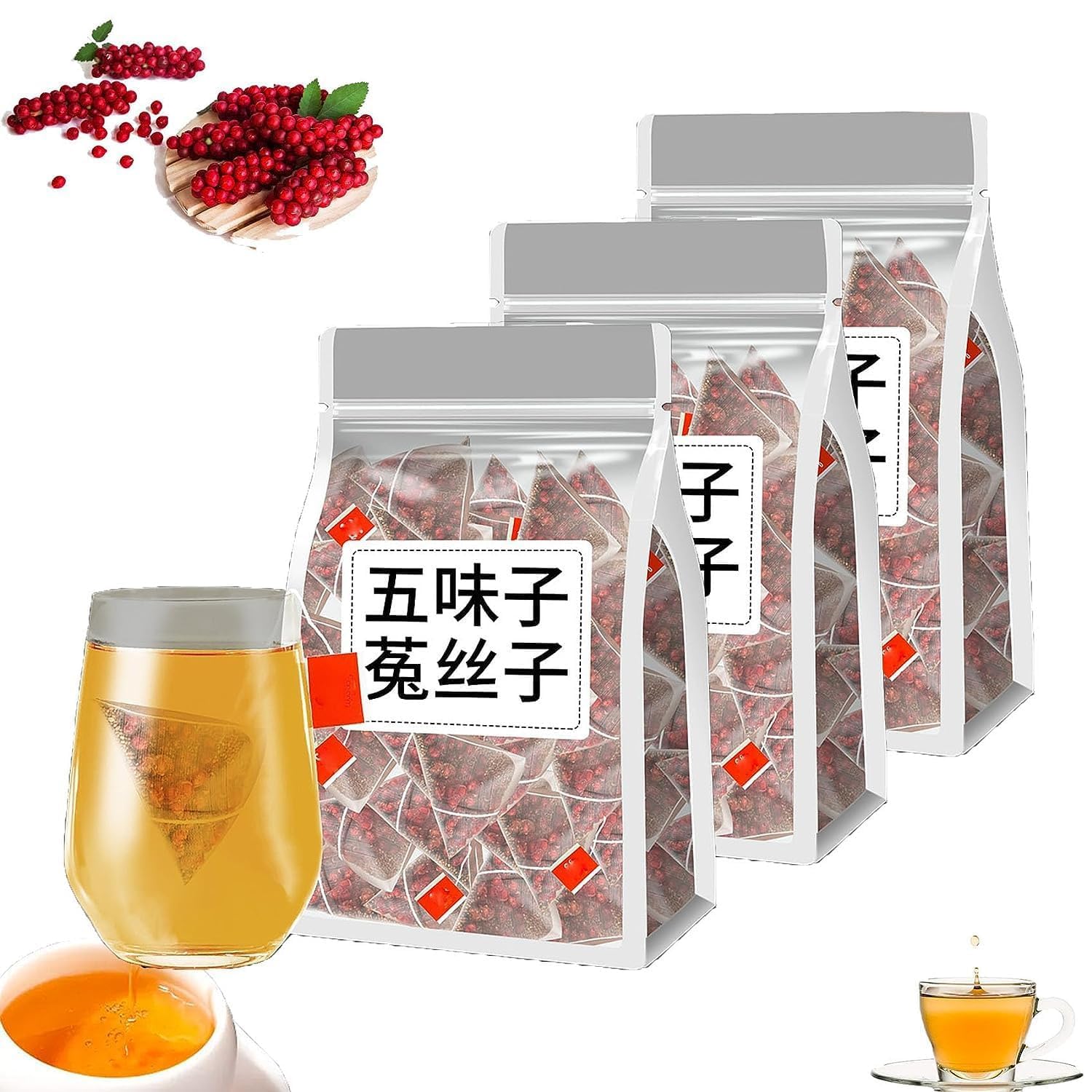 Men s Essentials Five Flavors Goji Berry Tea Schisandra Dodder Tea 20/40/60pcs Five Flavors Wolfberry Tea Chinese Kidney Care Tea Health Liver Care Tea for Men (60pcs-3bags)