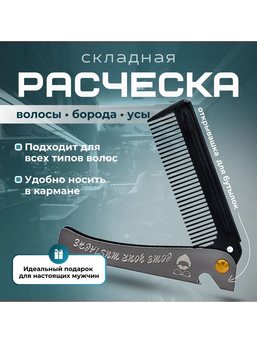 Мужская складная расческа для волос и бороды с открывашкой