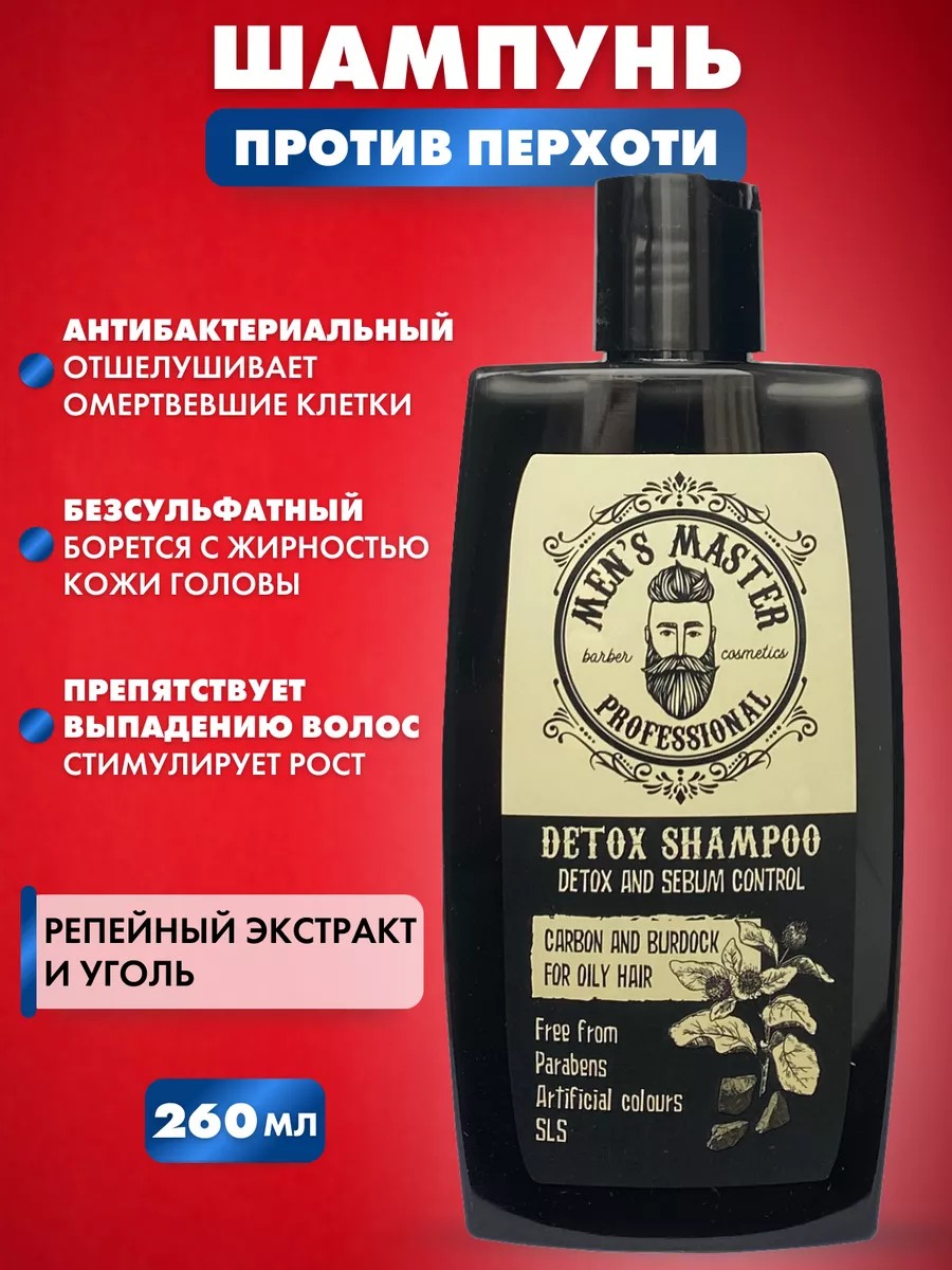 Безсульфатный шампунь MEN’S MASTER детокс с углем и репейным экстрактом.