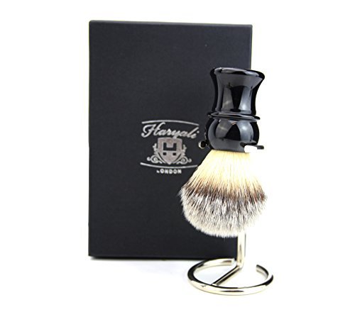 Shaving brush made of synthetic hair, black solid plastic handle, economical shaving brush, series 100 synthetic hair, ideal for sensitive skin.Creates a rich foam for wet shaving.Massages and peeled the skin during foaming.If the whiskers softened and lifts for a more thorough shave.Wash with warm soapy water before use to ""primed"" it.Height: 12 cm.0.5 cm in size.Height: 6 cm, roof hair, node size: 22 mm, weight: 50 g.customer satisfaction: Haryali London will give 100 free replacement or full money back guarantee if the customer is not satisfied with the purchase.The shaving stand keeps your brush secure and also extends the lifespan of the brush by properly drying the roof hair on the brush.The stand is made of high -quality stainless steel with a straight version and chrome -plated surface.The bristles of our roof hair shaving brush consist of synthetic roof hair.Some people use their hands to make foam, but hands cannot reach where the bristles can reach on the brush.If you use your hands to make foam, you have to use a larger amount of shaving soap or shaving cream.The handle of our roof hair brush is made of high -quality plastic, which makes our roof hair brush more durable.The leather makes the hair a lot softer on her face and the razor slides over the hair and cuts it much easier.Shaving brush is used to make foam for wet shaving.A perfect shave without a razor brush is not possible.Our shaving brush and razor brush is delivered in a beautiful black gift box and can be a perfect gift for your son, father or friends for birthday, Thanksgiving or Christmas.Rasierpinsel aus synthetischem Haar, schwarzer solider Kunststoffgriff, sparsamer Rasierpinsel, Serie 100 synthetisches Haar, ideal für empfindliche Haut. Erzeugt einen reichhaltigen Schaum für die Nassrasur. Massiert und peelt die Haut während des Aufschäumens. Erweicht und hebt die Barthaare für eine gründlichere Rasur. Vor dem ersten Gebrauch mit warmem Seifenwasser waschen, um sie zu ""grundieren"". Höhe: 12 cm. 0,5 cm große Spange. Höhe: 6 cm, Dachshaar, Knotengröße: 22 mm, Gewicht: 50 g.KUNDENZUFRIEDENHEIT: Haryali London wird 100 kostenlosen Ersatz oder volle Geld-zurück-Garantie geben, wenn der Kunde mit dem Kauf nicht zufrieden ist. Der Rasierständer hält Ihren Pinsel sicher und verlängert auch die Lebensdauer des Pinsels, indem er die Dachshaare auf dem Pinsel richtig trocknen kann. Der Ständer besteht aus hochwertigem Edelstahl mit gerader Ausführung und verchromter Oberfläche. Die Borsten unseres Dachshaar-Rasierpinsels bestehen aus synthetischen Dachshaaren. Manche Menschen verwenden ihre Hände, um Schaum zu machen, aber Hände können dort nicht erreichen, wo die Borsten auf der Bürste erreichen können. Wenn Sie Ihre Hände verwenden, um Schaum zu machen, dann müssen Sie eine größere Menge Rasierseife oder Rasiercreme verwenden. Der Griff unseres Dachshaarpinsels besteht aus hochwertigem Kunststoff, der unseren Dachshaarpinsel langlebiger macht. Das Leder macht die Haare auf Ihrem Gesicht viel weicher und der Rasierer gleitet über die Haare und schneidet sie viel einfacher. Rasierpinsel wird verwendet, um Schaum für eine Nassrasur zu machen. Eine perfekte Rasur ohne Rasierpinsel ist nicht möglich. Unser Rasierpinsel- und Rasierpinselständer wird in einer schönen schwarzen Geschenkbox geliefert und kann ein perfektes Geschenk für Ihren Sohn, Vater oder Freunde zum Geburtstag, Erntedankfest oder Weihnachten sein.Rasierpinsel für Herren, leicht, Kunsthaar, mit Pinselhalter