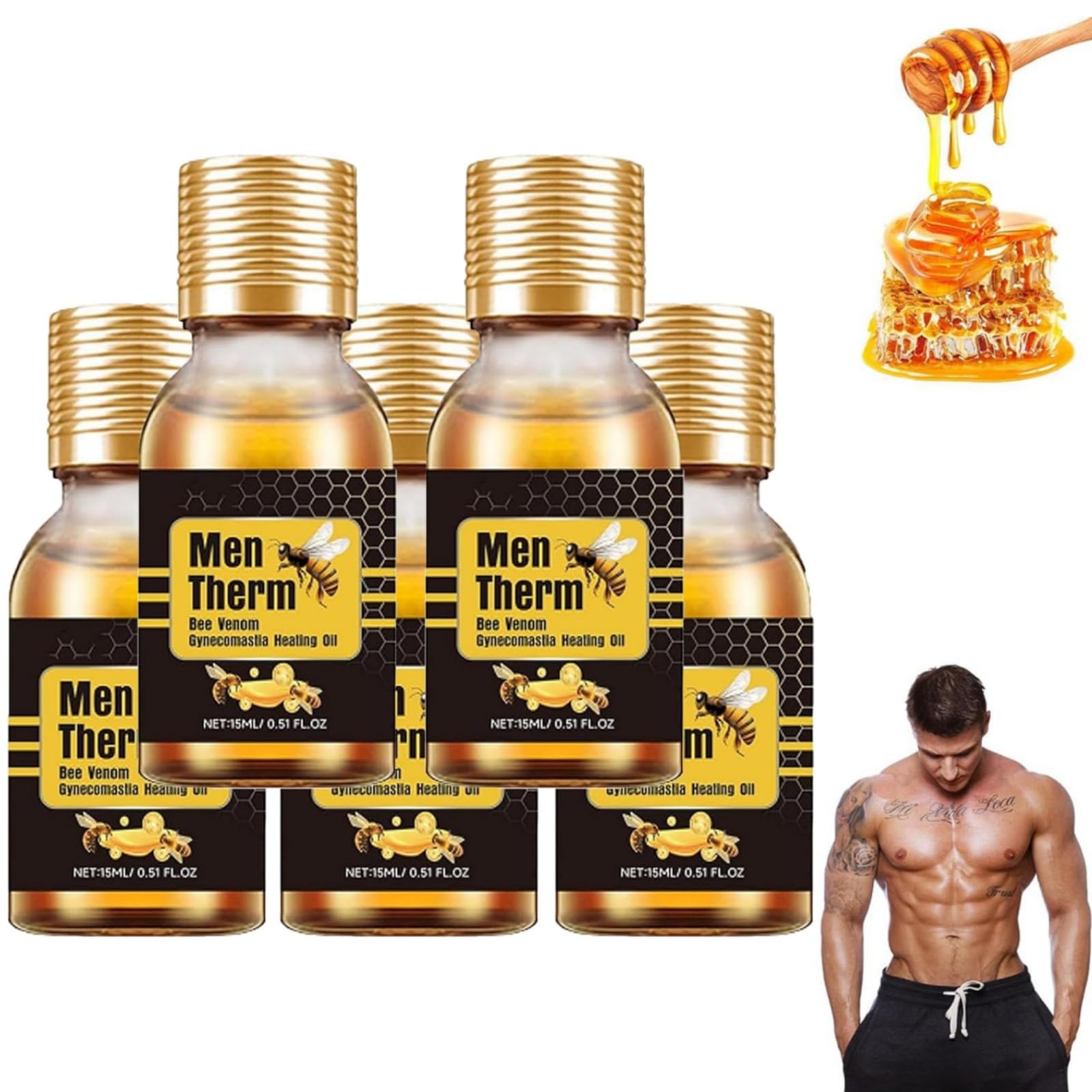 Men Therm Bee Venom Gynecomastia Heating Oil, 2024 Best Men Therm Bee Venom, 15ml Mentherm Bee Venom Gel, Can Help Strengthen the Chest Muscles, Verbessert die Elastizität der Haut (5PC)