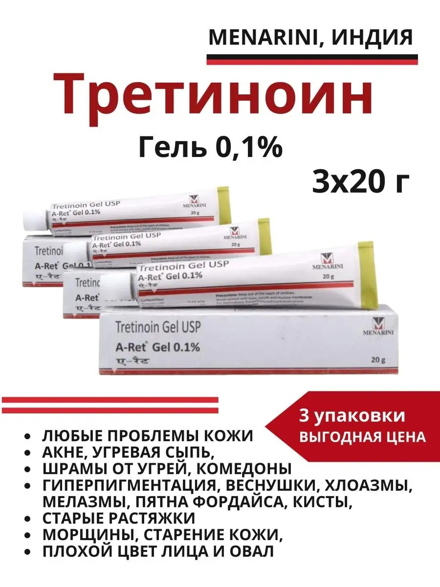 | Комплектация | Третиноин гель 0,01%, 3 упаковки |