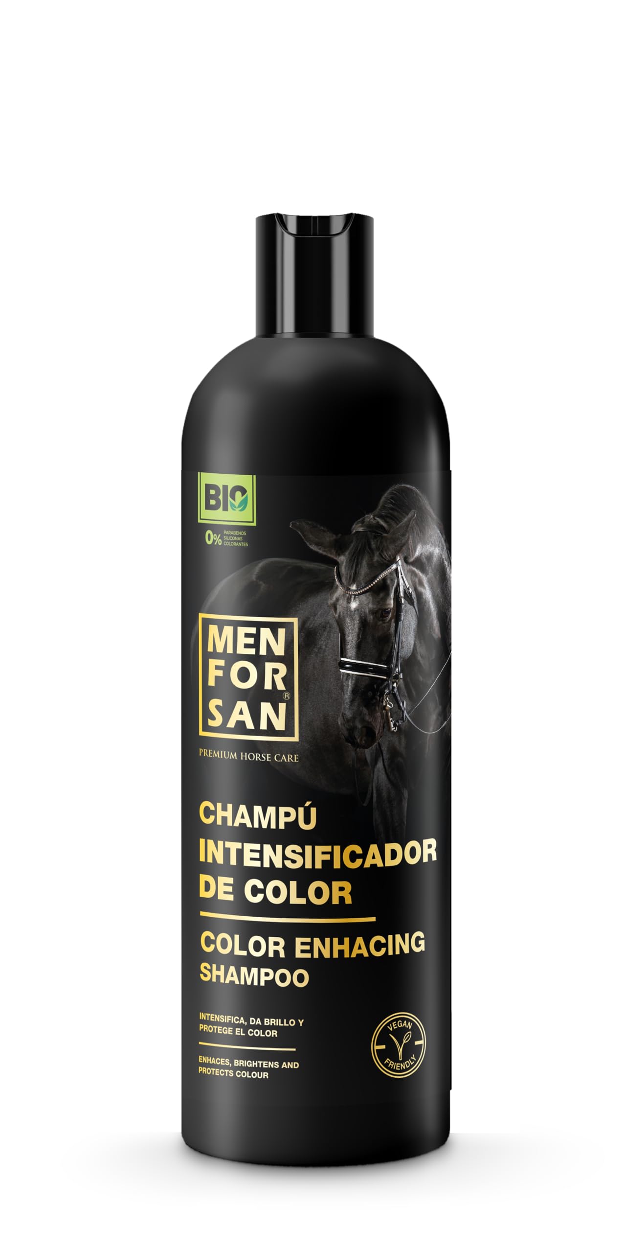 This shampoo is designed to improve, intensify, and enhance all horse coat colors (colored, brown, jet, sorrel, white, gray, and lily of the valley). It adds shine and softness to the horse's coat, leaves a delicate fragrance, and reduces breakage of the mane and tail for greater suppleness. This shampoo has a vegan formula with organic ingredients and a pH-neutral formula suitable for horses' skin, allowing for frequent use. Suitable for all breeds and ages. INGREDIENTS All natural INSTRUCTIONS 1. Wet the horse's body with plenty of warm water. 2. Apply the shampoo to the neck, mane, body, back, and tail. 3. Massage in a circular motion until a rich, creamy lather is obtained. 4. Leave on. 5. Rinse and brush. See moreDIRECTIONS FOR USE: Wet the horse's body thoroughly with lukewarm water. Apply the shampoo, working a lather into the neck, mane, rump, back, and tail. Massage in circular motions until a rich, creamy lather is obtained, and leave on for a few moments. Rinse and brush. ORGANIC AND VEGAN PRODUCT: This shampoo is made with 100 natural ingredients of organic origin that are gentle on the animal's skin and coat. It contains no animal-derived ingredients and none are used in the manufacturing process. FOR ALL BREEDS AND ALL AGES: This shampoo has a vegan formula and organic ingredients, as well as a neutral pH suitable for a horse's skin, making it suitable for frequent use. Suitable for all breeds and all ages. SHINE AND SOFTNESS: Brings shine and softness to the horse's coat, leaving a delicate fragrance, and reduces breakage of the mane and tail for greater suppleness. INTENSIFIES NATURAL COLOR: Shampoo designed to improve, intensify, and enhance all types of equine coat colors (colored, brown, jet, sorrel, white, gray, and lily of the valley).MENFORSAN Shampooing intensifiant de couleur pour chevaux, 5L Rehausse la couleur naturelle BIO - Vegan friendly - 100 naturel PREMIUM HORSE CARE Agréable One SizeDESCRIPTION DU PRODUIT DESCRIPTION DU PRODUIT Shampooing conçu pour améliorer, intensifier et rehausser toutes les couleurs de robe des chevaux (robe colorée, brune, jais, oseille, blanche, grise, brune et muguet). Apporte brillance et douceur à la robe du cheval laisse un parfum doux et réduit la casse des crins de la crinière et de la queue pour une plus grande souplesse. Ce shampooing a une formule végétalienne et des ingrédients biologiques, ainsi qu'un pH neutre adapté à la peau du cheval, ce qui permet de l'utiliser fréquemment. Convient à toutes les races et à tous les âges. INGRÉDIENTS Tout naturel MODE D'EMPLOI 1. Humidifiez le corps du cheval avec beaucoup d'eau tiède. 2. Appliquez le shampooing sur le cou, le crin, le tronc, le dos et la queue. 3. Masser circulaire jusqu'à obtenir une mousse riche et crémeuse. 4. Laissez agir. 5. Rincez et brossez. Voir plusMODE D'EMPLOI : Mouiller le corps du cheval avec beaucoup d'eau tiède. Appliquer le shampooing en faisant mousser l'encolure, la crinière, la croupe, le dos et la queue. Masser en mouvements circulaires jusqu'à l'obtention d'une mousse riche et onctueuse, laisser agir quelques instants. Rincer et brosser. PRODUIT BIOLOGIQUE ET VEGAN : Ce shampooing est fabriqué de manière 100 naturelle avec des ingrédients d'origine biologique qui respectent au maximum la peau et le pelage de l'animal. Il ne contient aucun ingrédient d'origine animale et n'est pas utilisé au cours du processus de fabrication. POUR TOUTES LES RACES ET TOUS LES ÂGES : ce shampooing a une formule végétalienne et des ingrédients BIO, ainsi qu'un pH neutre adapté à la peau du cheval, ce qui permet de l'utiliser fréquemment. Convient à toutes les races et à tous les âges. BRILLANCE ET DOUCEUR : apporte brillance et douceur à la robe du cheval en laissant un doux parfum et réduit la casse des crins de la crinière et de la queue pour une plus grande souplesse. INTENSIFIE LA COULEUR NATURELLE : Shampooing conçu pour améliorer, intensifier et rehausser tous les types de couleurs de robe des équidés (robe colorée, brune, jais, oseille, blanche, grise, brune et muguet).