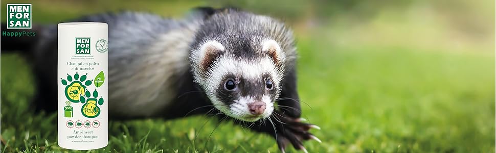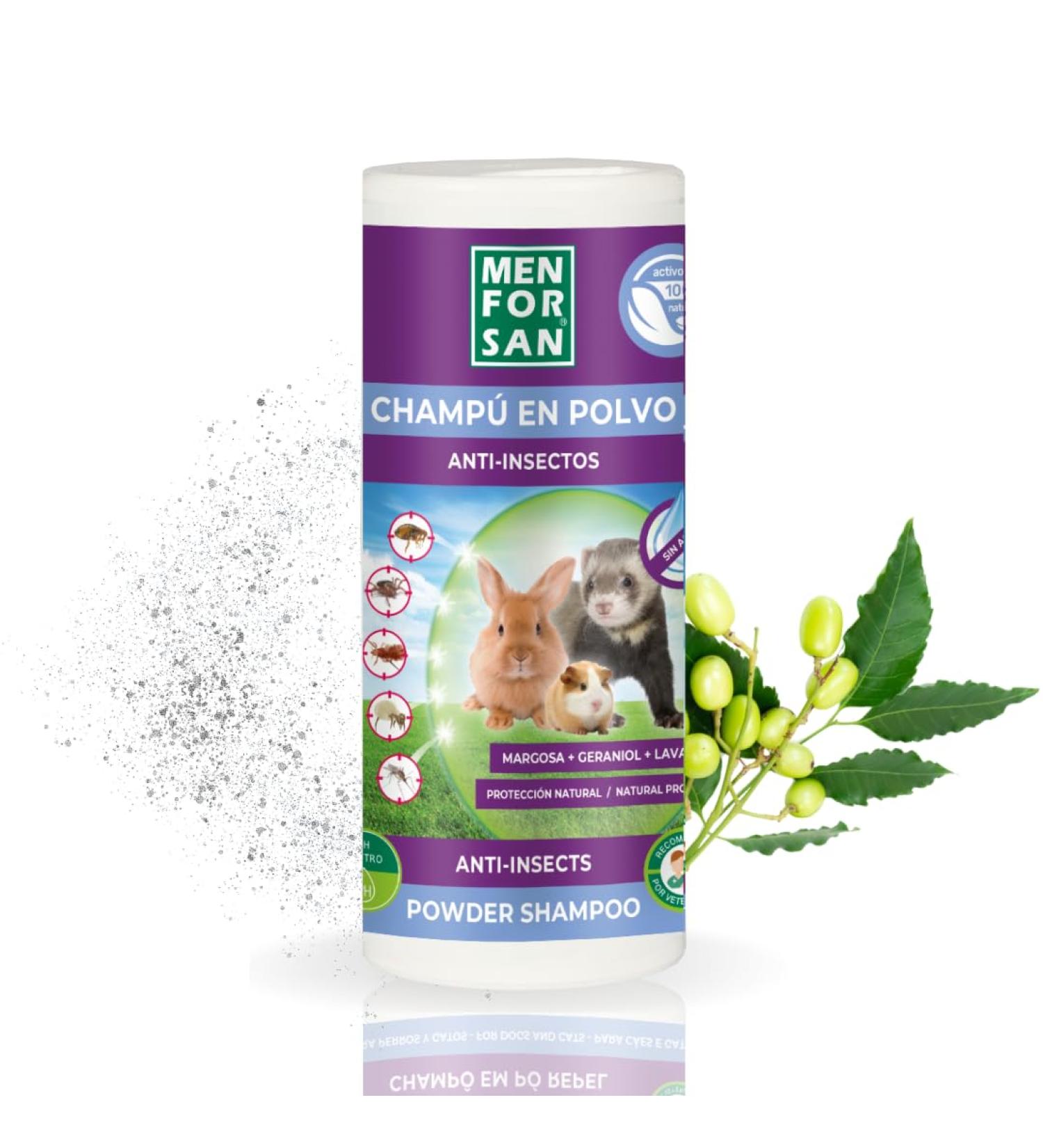 Powder shampoo for rodents, rabbits and ferrets indicated for the maintenance and hygiene of the coat without the use of water. Its formula contains natural surfactants which eliminate bad odors, deodorizing and sanitizing the coat. Contains margosa extract and geraniol, natural insecticides, which prevent and repel all types of insects, fleas, ticks, mosquitoes and mites. Recommended for puppies, convalescent, pregnant, very old animals, those afraid of water or for cleaning in harsh winter days when the usual bath is not very suitable. DIRECTIONS: Apply directly to the animal's dry coat, sprinkling the area to be cleaned and avoiding contact with the eyes. Massage carefully from the tip of the hair to the skin so that the product adheres and brush vigorously. DIRECTIONS FOR USE DIRECTIONS: Apply directly to the animal's dry coat, sprinkling the area to be cleaned and avoiding contact with the eyes. Massage carefully from the tip of the hair to the skin so that the product adheres and brush vigorously. SAFETY WARNING Use biocides with caution. Read the label and product information before using it. Use biocides with caution. Read the label and product information before use. DIRECTIONS FOR USE: Apply directly to the animal's dry coat, sprinkling the area to be cleaned and avoiding contact with the eyes. Massage carefully from the tip of the hair to the skin so that the product adheres and brush vigorously. USE IN: Recommended for puppies, convalescent, pregnant, very old, water-averse animals or for cleaning on harsh winter days when the usual bath is not very suitable. MARGOSA EXTRACT AND GERANIOL: Contains margosa extract and geraniol, natural insecticides, which prevent and repel all types of insects, fleas, ticks, mosquitoes and mites. ELIMINATES ODORS: Its formula contains natural surfactants that eliminate unpleasant odors, deodorizing and sanitizing the coat. POWDER SHAMPOO: Powder shampoo for rodents, rabbits and ferrets indicated for the maintenance and hygiene of the coat without the use of water. Shampooing en poudre pour rongeurs, lapins et furets indiqué pour l'entretien et l'hygiène du pelage sans l'utilisation d'eau. Sa formule contient des tensioactifs naturels qui éliminent les mauvaises odeurs, désodorisant et assainissant le pelage. Contient de l'extrait de margosa et du géraniol, insecticides naturels, qui préviennent et repoussent tous les types d'insectes, puces, tiques, moustiques et acariens. Recommandé pour les chiots, les animaux convalescents, enceintes, très âgés, ayant peur de l'eau ou pour le nettoyage dans les dures journées d'hiver lorsque le bain habituel n'est pas très adapté. MODE D'EMPLOI : Appliquer directement sur le pelage sec de l'animal, en saupoudrant la zone à nettoyer et en évitant le contact avec les yeux. Masser soigneusement de la pointe du poil à la peau pour que le produit adhère et brosser vigoureusement. MODE D'EMPLOI MODE D'EMPLOI : Appliquer directement sur le pelage sec de l'animal, en saupoudrant la zone à nettoyer et en évitant le contact avec les yeux. Masser soigneusement de la pointe du poil à la peau pour que le produit adhère et brosser vigoureusement. AVERTISSEMENT DE SÛRETÉ Utilisez les biocides avec prudence. Lisez l'étiquette et les informations sur le produit avant de l'utiliser. Utilisez les biocides avec prudence. Lisez l'étiquette et les informations sur le produit avant de l'utiliser. MODE D'EMPLOI : Appliquer directement sur le pelage sec de l'animal, en saupoudrant la zone à nettoyer et en évitant le contact avec les yeux. Masser soigneusement de la pointe du poil à la peau pour que le produit adhère et brosser vigoureusement. UTILISATION DANS : Recommandé pour les chiots, les animaux convalescents, enceintes, très âgés, ayant peur de l'eau ou pour le nettoyage dans les dures journées d'hiver lorsque le bain habituel n'est pas très adapté. EXTRAIT DE MARGOSA ET GERANIOL : Contient de l'extrait de margosa et du géraniol, insecticides naturels, qui préviennent et repoussent tous les types d'insectes, puces, tiques, moustiques et acariens. ÉLIMINE LES ODEURS : sa formule contient des tensioactifs naturels qui éliminent les mauvaises odeurs, désodorisant et assainissant le pelage. SHAMPOOING EN POUDRE : Shampooing en poudre pour rongeurs, lapins et furets indiqué pour l'entretien et l'hygiène du pelage sans l'utilisation d'eau.