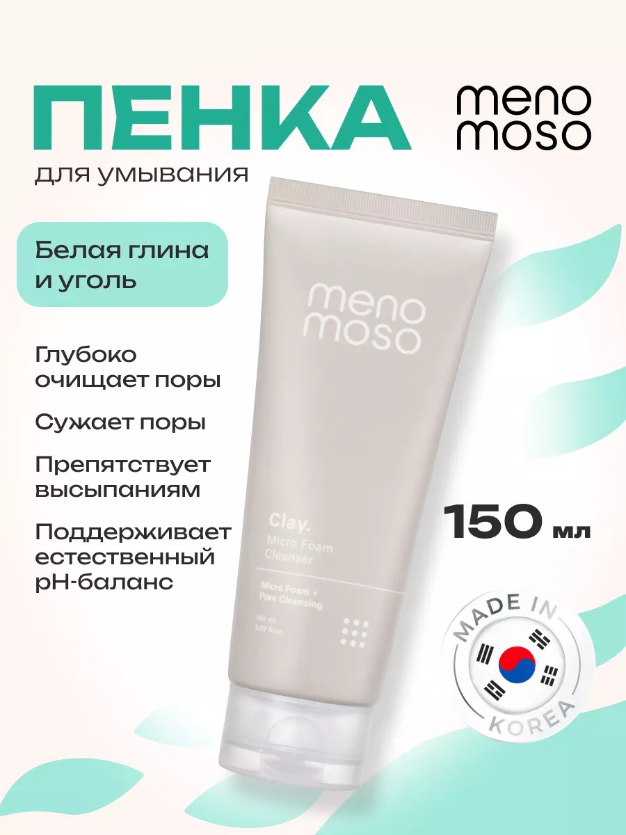 Пенка для очищения пор с белой глиной и углем