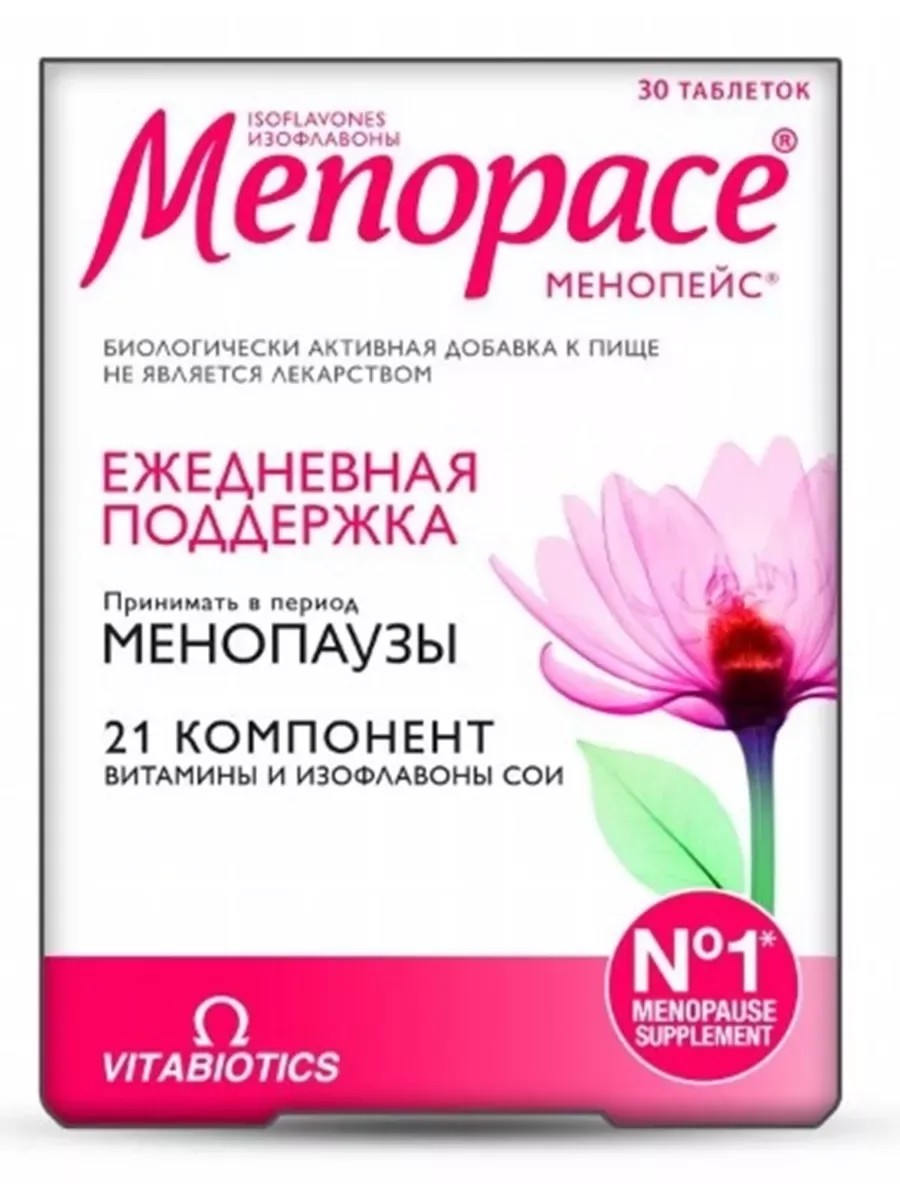 Менопейс изофлавоны – это биологически активная добавка к пищена основе изофлавонов сои, которая помогает женщинам в период менопаузы справляться со стрессом, бессонницей и другими неприятными симптомами. Каждая таблетка содержит 20 мг изофлавонов, а также витамины и минералы, которые улучшают их усвоение организмом. Принимать 1 таблетке в день, желательно во время еды. В составе продукта нет ГМО, консервантов, искусственных красителей и ароматизаторов. Это натуральный способ поддерживать здоровье в период изменений организма