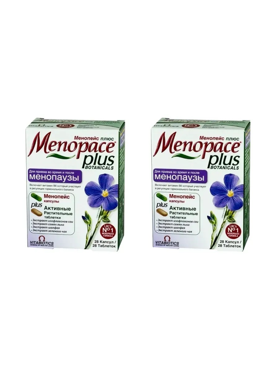 Менопейс Плюс при менопаузе, 28 таб (940мг) + 28 капс (577мг) х 2 уп