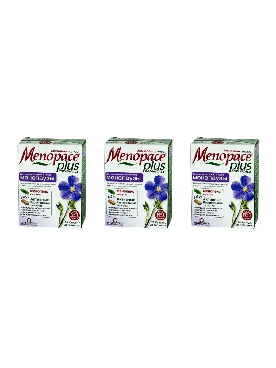 Менопейс Плюс при менопаузе, 28 таб (940мг) + 28 капс (577мг) х 3 уп