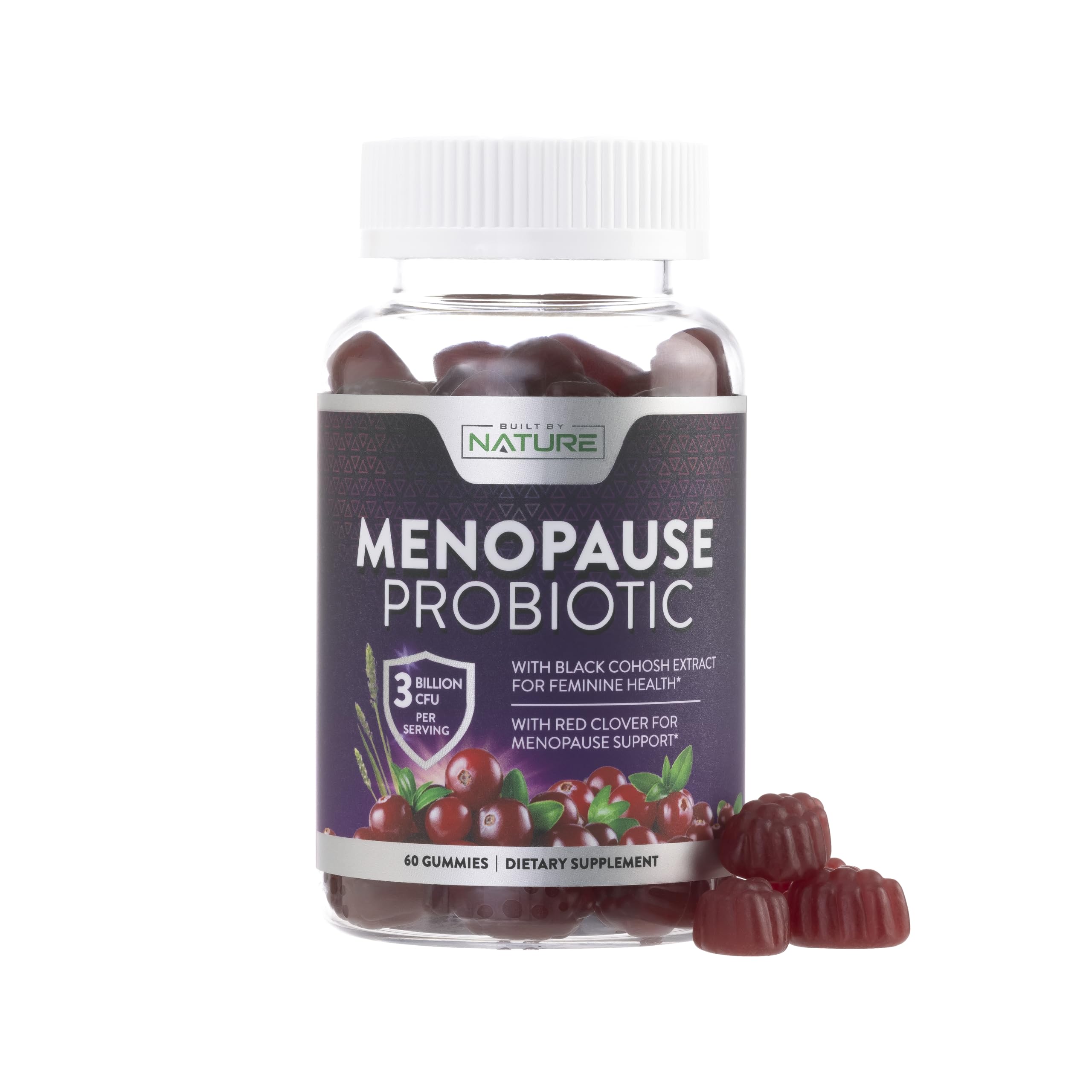 Navigate the transition of menopause with ease and confidence with our Menopause Supplements for Women. Each probiotic gummy is a beacon of comfort during times of hormonal upheaval, providing relief from some of the most common and challenging symptoms like hot flashes, night sweats, and mood swings. Our carefully selected blend of Black Cohosh and Cranberry offers a natural solution to support your body's changing needs, promoting hormonal balance and urinary tract health. With a focus on simplicity and effectiveness, our Menopause Probiotic Gummy makes your wellness routine a breeze. They're not only easy to take but also pleg to the palate, ensuring that you never miss a day of support. Designed with your lifestyle and values in mind, our gummies are vegan, non-GMO, and free from artificial additives. We believe that transparency and quality go hand in hand, which is why our supplements are produced in a GMP-certified facility, giving you peace of mind with every purchase. With a full month's supply in each bottle, our Menopause Supplements for Women are a trustworthy companion for your menopausal journey, empowering you to live every day to its fullest.Quality You Can Trust: Manufactured in a GMP-certified facility, our Menopause Supplements for Women reflect our commitment to quality. With 60 gummies per bottle, you get a full month's supply of non-hormonal support crafted to the highest standards. Vegan-Friendly Formula: Committed to catering to all dietary needs, our gummies are made with non-GMO ingredients, are completely vegan, and free from artificial colors, flavors, or preservatives. Convenient and Delicious: Say goodbye to hard-to-swallow pills. Our Menopause Probiotic Gummy is a tasty, easy-to-take supplement. Designed for your busy life, each serving is packed with the necessary nutrients to support hormonal balance and overall health. Infused with Black Cohosh & Cranberry: Formulated with a potent blend of Black Cohosh, known for its efficacy in reducing menopausal symptoms, and Cranberry for urinary tract health, these gummies are a powerful ally for women’s wellness. Comprehensive Menopause Relief: Our probiotic gummies provide targeted support for the main symptoms of menopause, including hot flashes, night sweats, and mood swings, offering women a holistic approach to managing this natural transition.