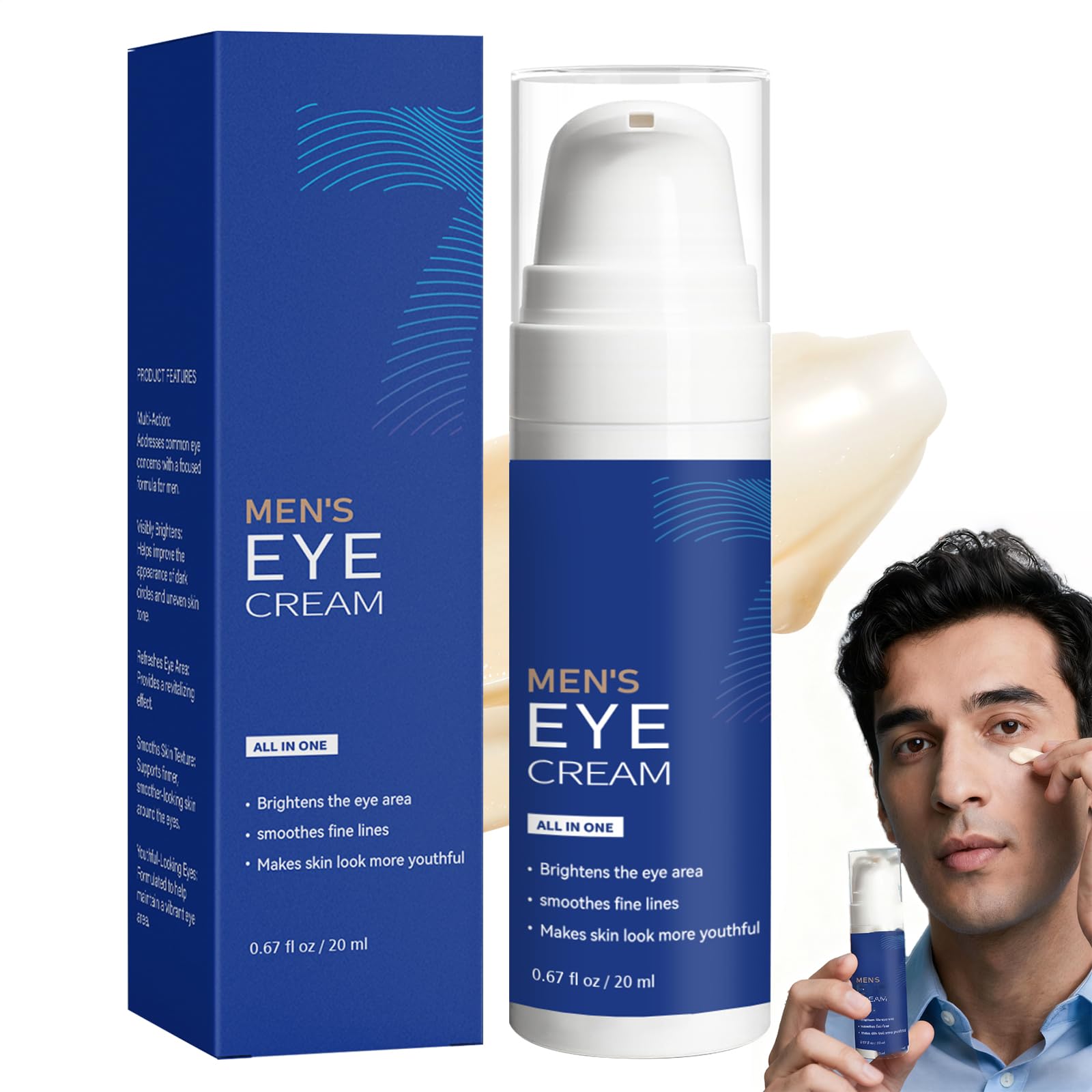 Mens Eye Bags Treatment Cream, Instant Eye Serum for Under-Eye Bags and Dark Circles, Wrinkle Smoothing Serum with Peptide Collagen, Lightweight Moisturizer - 20ml