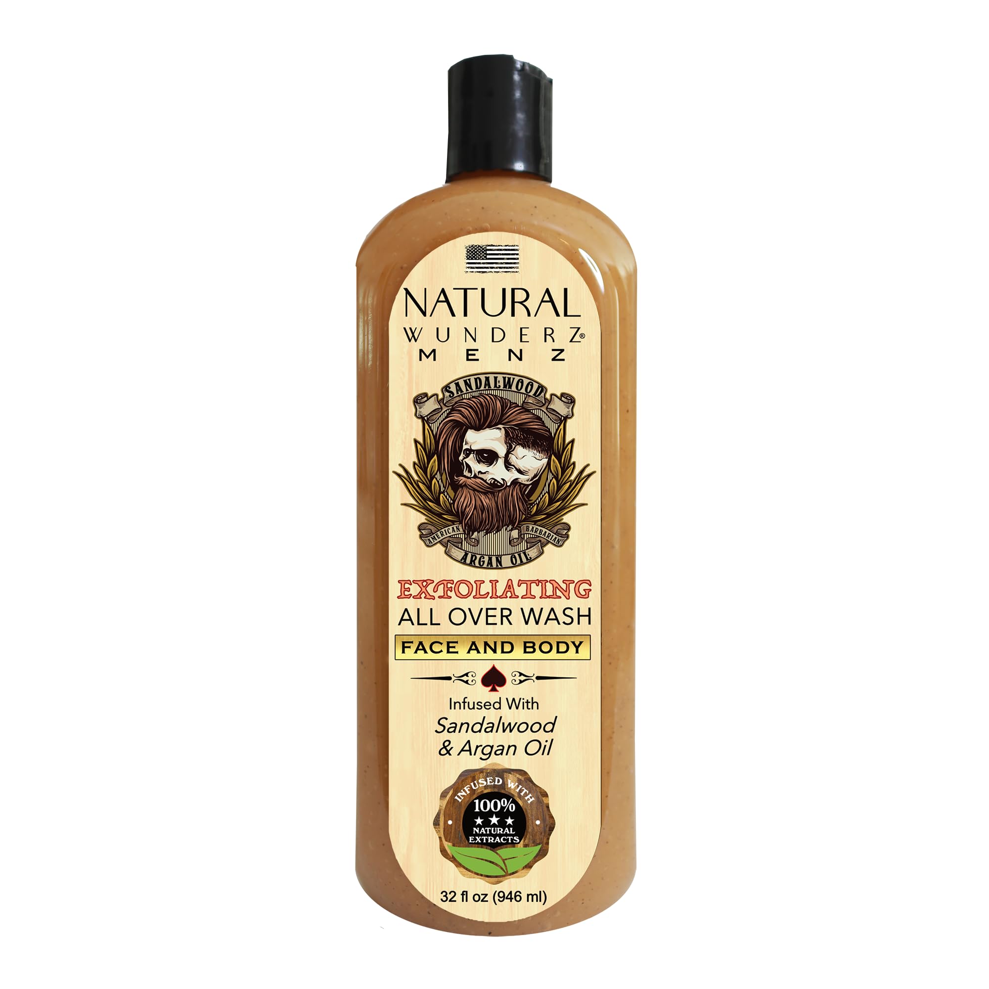 Mens Face and Body Wash with Sandalwood & Argan Oil 32 Fl Oz Exfoliating Liquid Soap with All Natural Ingredients Vegan Sulfate Free and Cruelty Free Body Scrub