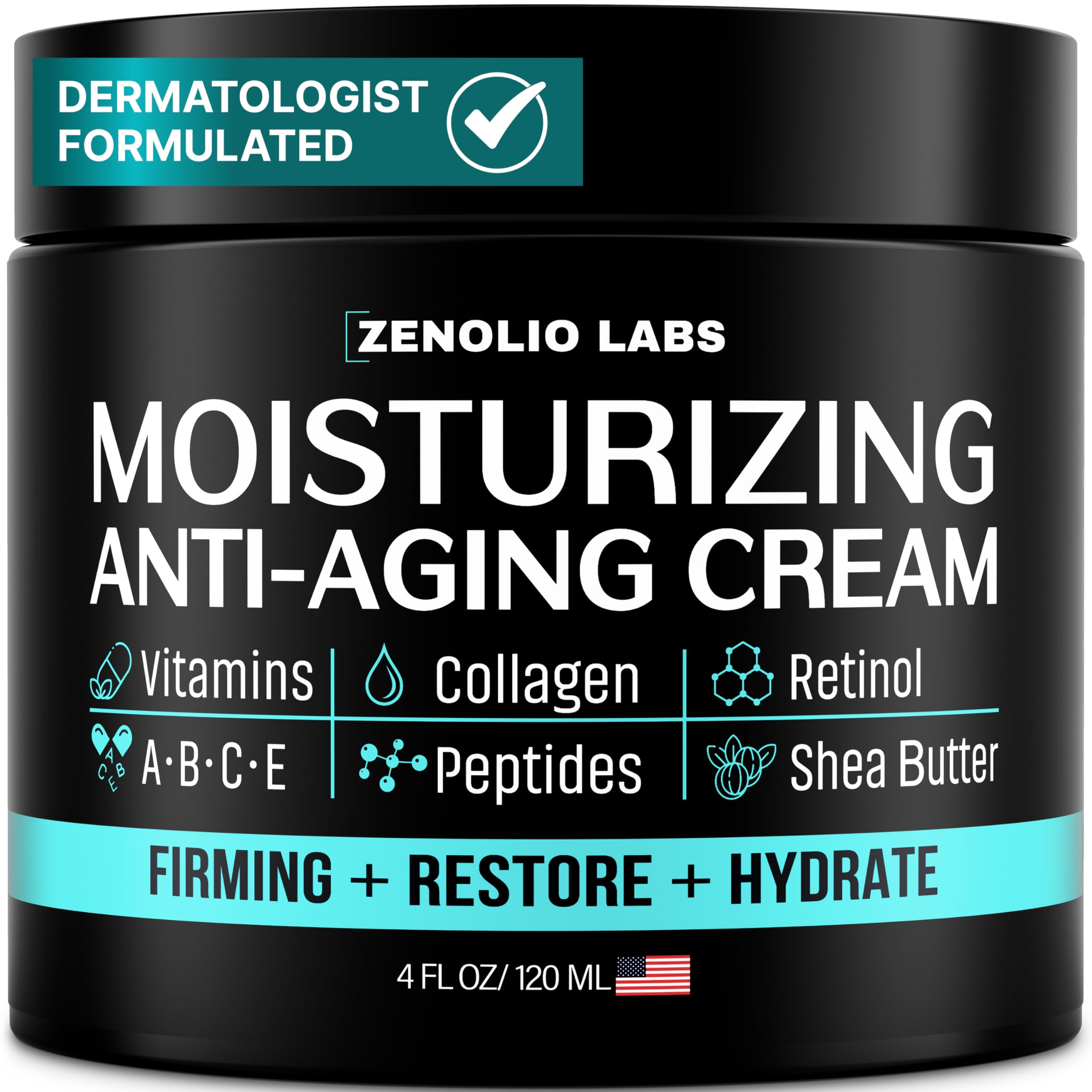 Mens Face Moisturizer Cream - Anti Aging & Wrinkle Face Cream - Mens Facial Moisturizer - Retinol Collagen Peptides Shea Butter Vitamins E & A - Facial Skin Care Eye Lotion - Day & Night 4 oz 4 Fl Oz (Pack of 1)