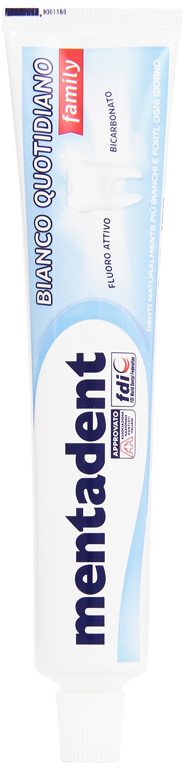 Mentadent dentifrice 75 ml blanc quotidien Family avec Fluor actif et bicarbonate dents naturellement plus blanches et plus fortes chaque jour – Protège dents – Dents Blanches.