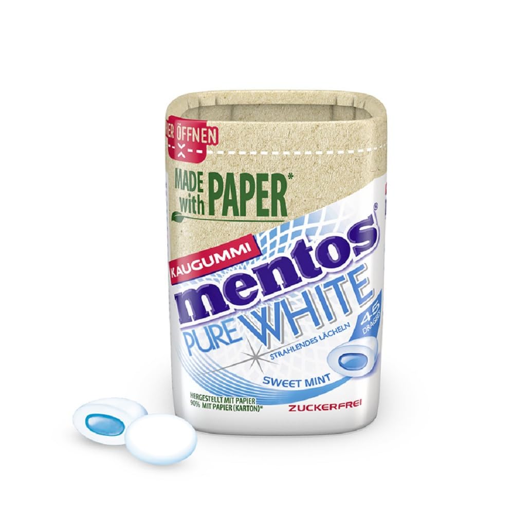 Mentos chewing gum sweet mint paper box - fruity variety in the mint variety in the paper box The popular chewing gum from mentos The characteristic consistency of mentos can also be found in the chewing gum, which have been firmly established on the market for 10 years now: on the outside, they are crisp and a mint taste kick is released when biting on it.In addition, the chewing gum scores with its long -lasting taste.The chewing gum in the extraordinary shape ensures the optimal mint moment at any time.The tooth -friendly mentos chewing gum are an ideal alternative to all sugary chewing gum.A can consists of 45 chewing gum dragees.In the advantage pack, mentos mint is just the right thing for everyone who wants to create a practical supply of their favorite variety of chewing gum. Sugar -free package pack Crunchy and delicious-crispy glazed on the outside and soft on the inside with a fruity-injected taste mentos gum stands for the highest quality.Enjoy sugar -free - mentos sweet mint contain no sugar and far fewer calories than sugary chewing gum. Ingredients / ingredients Sweet agent (xylitol (32%), Sorbit, Mannit, Maltits syrup, aspartam, acesulfam K), Cauch, stabilizer (glycerin), maltodextrin, aromas, starch, emulsifier (sugar estet from food acids, soyalecithin), thickener (cellulose intersection, Xanthan)(Carnauba wax), coconut oil, antioxidant (E321), dye (brilliant blue FCF). Instructions Storage in a cool and dry place Warnings Contains phenylalanine.Can have a laxative effect if consumed to excess. Address manufacturer/importer Perfetti van Melle Benelux B.V.P.O.Box 3000 4800 da Breda Holland More practical storage packing: in the car pack, the specialty is always quickly at hand;In the practical characteristic can with 90 percent box, favorite chewing gums are always at hand;The drages in the recoverable doses are suitable as a family pack for storage.Without any sugar: The minty and tooth -gentle mentos Mint without dyes and sugar ensure comfortable breath and a delicious break everywhere and everywhere.Breathing fresh and enjoyment: whether after a spicy food or simply for the fresh kick in between- in the reinforced can, the gluten and lactose-free chewing gum are always part of the party.Minty aroma: The delicious chewing gum dragees from mentos give in with the typical crack when biting on and then unfold the refreshing peppermint taste.Stay fresh: Mentos Pure Fresh Sweet Mint KauGummis impress with their cooling mint taste and with the liquid filling with xylitol. MENTOS KAUGUMMI SWEET MINT PAPER BOX — Fruchtige Vielfalt in der Sorte Minze in der Papier Box DAS BELIEBTE KAUGUMMI VON MENTOS Die charakteristische Konsistenz von Mentos findet sich auch in den Kaugummis wieder, die seit mittlerweile 10 Jahren fest auf dem Markt etabliert sind: Außen sind diese knackig und beim Draufbeißen wird ein Minz-Geschmackskick freigesetzt. Zusätzlich punktet das Kaugummi mit seinem lang anhaltenden Geschmack. Das Kaugummi in der außergewöhnlichen Form sorgt zwischendurch jederzeit für den optimalen minzigen Erfrischungsmoment. Die zahnschonenden Mentos Kaugummis sind eine ideale Alternative zu allen zuckerhaltigen Kaugummis. Eine Dose besteht aus 45 Kaugummi-Dragees. In der Vorteilspackung sind Mentos Mint genau das Richtige für alle, die sich einen praktischen Vorrat ihrer Lieblingssorte Kaugummis anlegen möchten. ZUCKERFREI IM VORTEILSPACK Knackig und lecker — Außen knackig glasiert und innen weich mit einem fruchtig-spritzigen Geschmack steht Mentos Gum für höchste Qualität. Zuckerfrei genießen — Mentos Sweet Mint enthalten keinen Zucker und weitaus weniger Kalorien als zuckerhaltige Kaugummis. INHALTSSTOFFE / ZUTATEN Süßungsmittel (Xylit (32%), Sorbit, Mannit, Maltitsirup, Aspartam, Acesulfam K), Kaumasse, Stabilisator (Glycerin), Maltodextrin, Aromen, Stärke, Emulgatoren (Zuckerester von Speisefettsäuren, SOJALECITHIN), Verdickungsmittel (Cellulosegummi, Xanthan), Überzugsmittel (Carnaubawachs), Kokosöl, Antioxidationsmittel (E321), Farbstoff (Brillantblau FCF). GEBRAUCHSANWEISUNG Lagerung an einem kühlen und trockenen Ort WARNHINWEISE Enthält eine Phenylalaninquelle. Kann bei übermäßigem Verzehr abführend wirken. ANSCHRIFT HERSTELLER/IMPORTEUR ?Perfetti Van Melle Benelux B.V. P.O. Box 3000 4800 DA Breda Holland MehrPRAKTISCHE VORRATSPACKUNG: Im Autopack ist die Spezialität immer schnell zur Hand; in der praktischen charakteristischen Dose mit 90 Prozent Karton sind die Lieblings-Kaugummis immer griffbereit; die Dragees in den wiederverschließbaren Dosen eignen sich als Familienpackung zur Bevorratung. GANZ OHNE ZUCKER: Die minzigen und zahnschonenden Mentos Mint ohne Farbstoffe und Zucker sorgen immer und überall für angenehmen Atem und eine leckere Auszeit für zwischendurch. ATEMFRISCHE UND GENUSS: Ob nach einem würzigen Essen oder auch einfach für den Frischekick zwischendurch — in der wiederverschließbaren Dose sind die gluten- und laktosefreien Kaugummis jederzeit mit von der Partie. MINZIGES AROMA: Die leckeren Kaugummi-Dragees von Mentos geben mit dem typischen Knacken beim Draufbeißen nach und entfalten daraufhin den erfrischenden Pfefferminz-Geschmack. FRISCH BLEIBEN: Mentos Pure Fresh Sweet Mint Kaugummis überzeugen durch ihren kühlenden Minz-Geschmack und durch die flüssige Füllung Mit Xylit.Mentos Kaugummi Pure Fresh Sweet Mint, Papierbox mit zuckerfreien Chewing Gum Dragees mit Minz-Geschmack und flüssiger Füllung, 1 x 90g