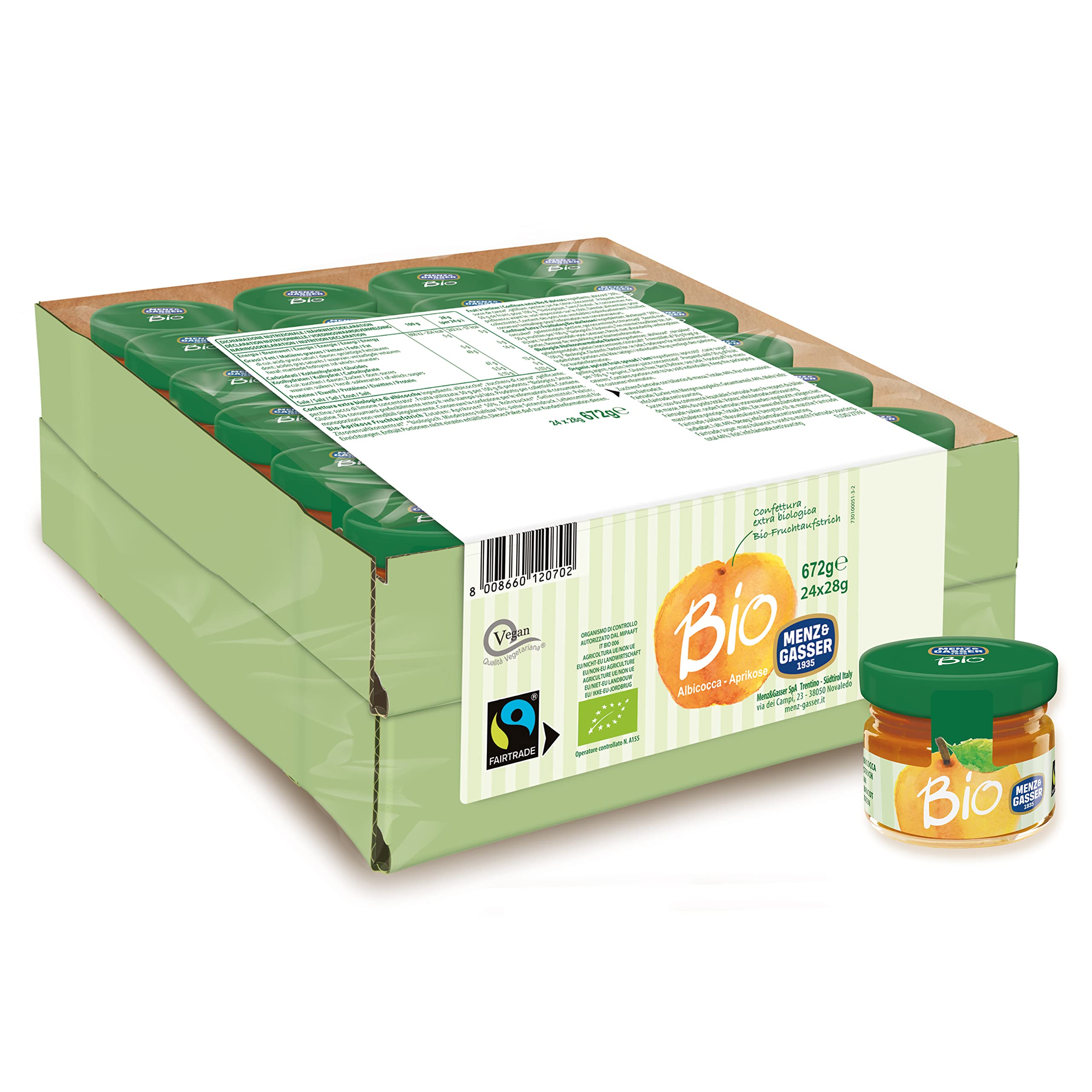 Menz Gasser Confiture extra bio d'abricots unidose biologique avec fruits, 100 fabriquée en Italie, 24 pots x 28 g