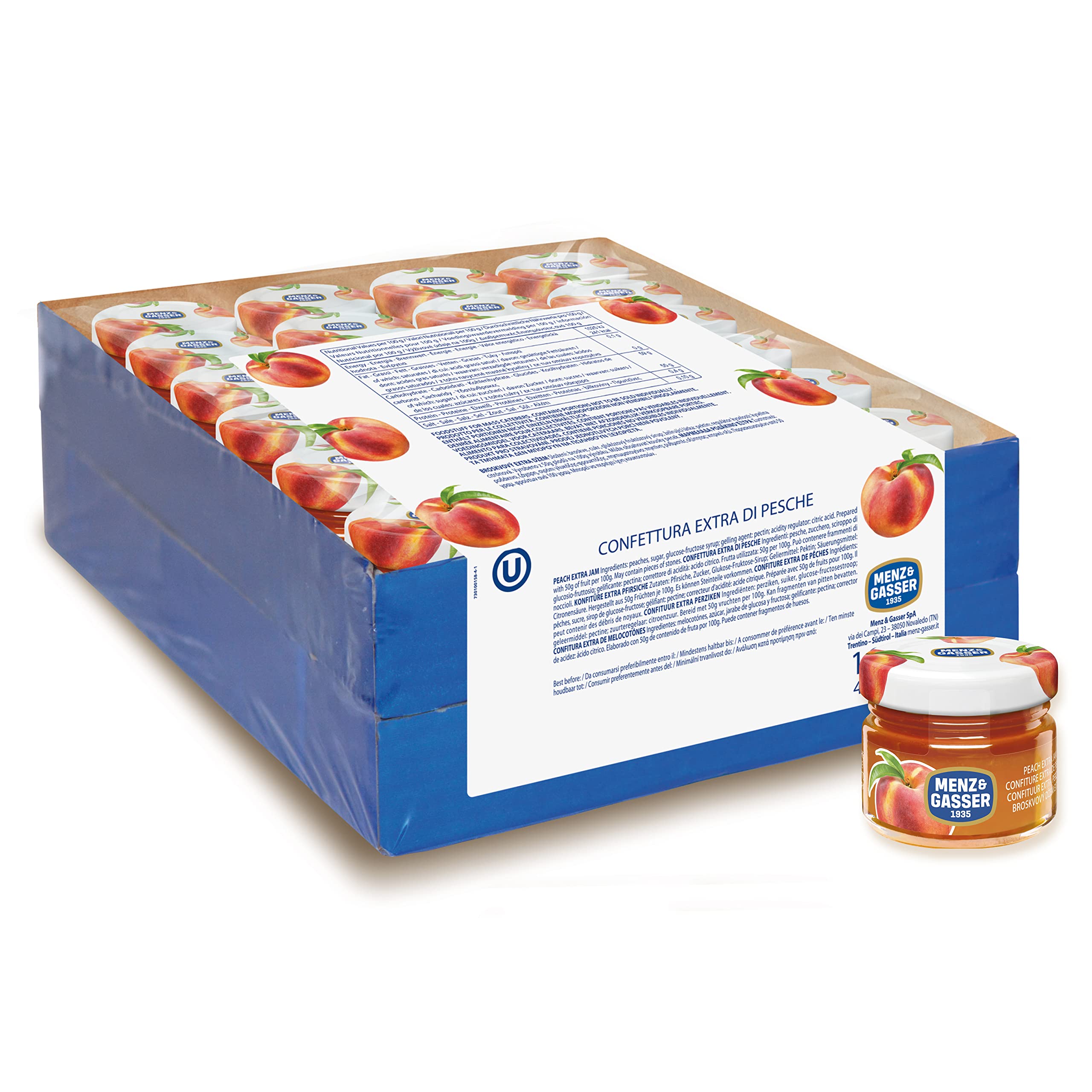 MENZ & GASSER 1935 Menz&Gasser Premium Quality Monodose Extra Peach Jam with Fruit High Quality 48 Pots x 28 g