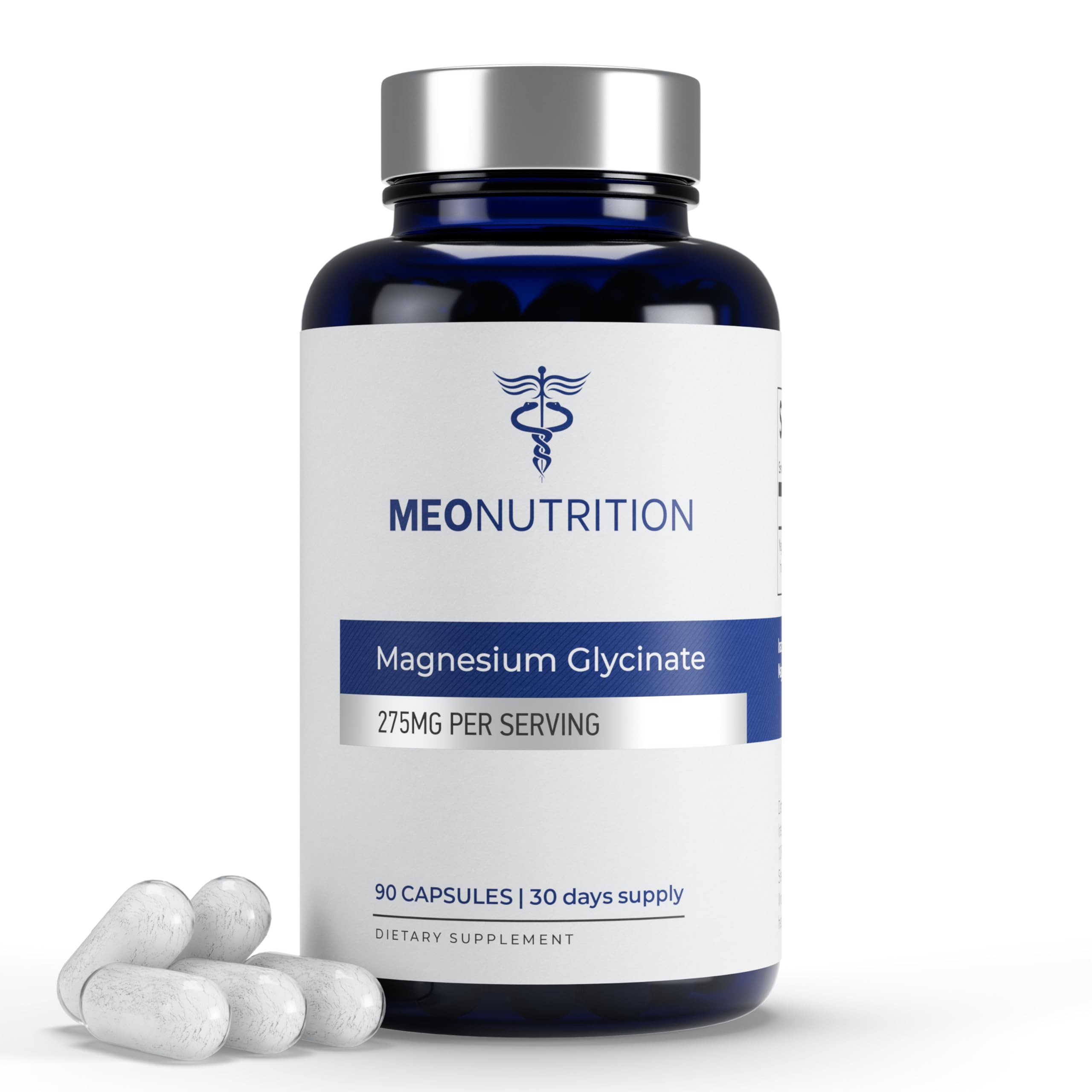 Meo Nutrition Magnesium Glycinate 275mg per Serving | 90 Vegan Capsules | Non-GMO Gluten-Free Gentle on Digestion | Supports Sleep Heart & Bone Health | Made in USA