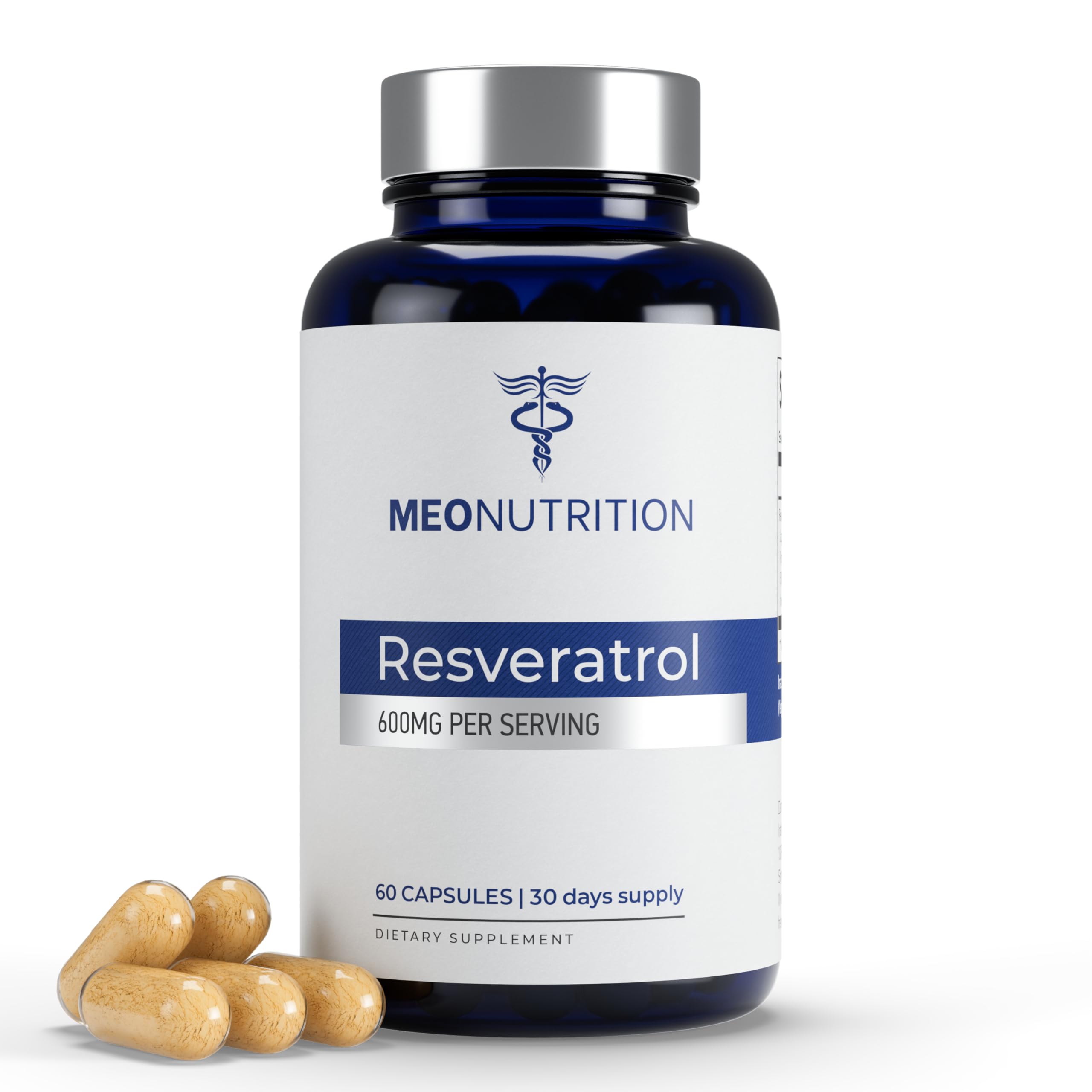 Meo Nutrition Resveratrol 600mg 60 Capsules | Antioxidant Supplement | Non-GMO Gluten-Free Vegan | Supports Wellness & Vitality | Made in USA