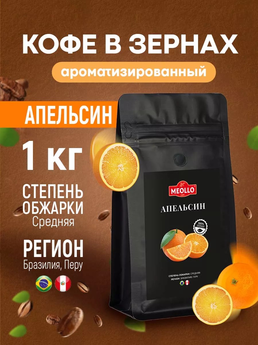 Кофе зерновой 1 кг со вкусом АПЕЛЬСИН СИЦИЛИЙСКИЙ (красный) свежеобжаренный Арабика 100%. Натуральный ароматизированный кофе в зернах MEOLLO - 1кг элитного сорта арабика (arabica) средней обжарки обладает насыщенным ароматом и неповторимым вкусом, а главное – не содержит сахара. В состав входят бразильские зерна светлой обжарки сорта Бразилия Сантос. За счет правильной свежей обжарки он идеально подходит для зерновой кофемашины и приготовления настоящего турецкого кофе. Легко измельчается в кофемолке и подходит для варки в турке, а также гейзерной, рожковой и капельной кофеварок. При очень мелком помоле отлично заваривается в кружке. Уникальные вкус и аромат каждого артикула дополнительно указаны на главной фотографии товара. MEOLLO регулярно участвует в каждой проводимой акции – обязательно добавьте наш бренд в избранное, чтобы не упустить возможность выгодно купить кофе со скидкой в подарок.