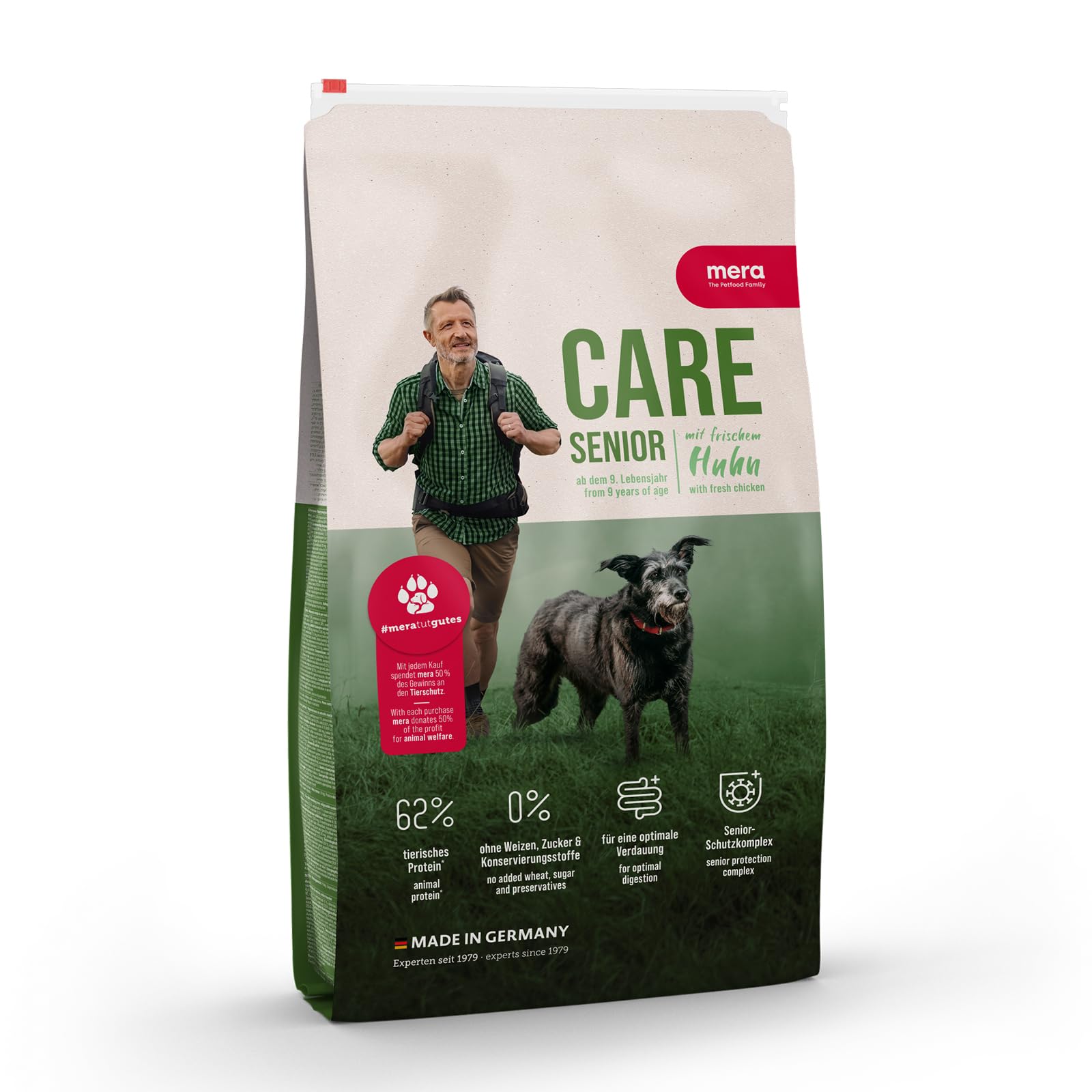 CARE Senior Chicken – For the health and well-being of your dog. We focus on quality and transparency. Our dog food contains up to 83 animal protein thanks to the addition of fresh meat. This means your dog gets the essential nutrients he needs to be active, healthy and happy. Additionally, with every purchase of a Mera CARE package, 50 of profits go directly into animal welfare. We firmly believe that dogs and other animals in this world deserve a safe and loving home. Your purchase supports animal welfare organizations and allows us to make the world a better place for our furry friends. Senior Chicken is the perfect choice to give your dog the food he truly deserves. Together we can create a world where all animals can live happy and healthy lives. INGREDIENTS Composition: refreshing chicken meat (20 ), chicken protein (16 , dried and hydrolyzed), rice, corn, corn flour, barley, apple pomace (4 ), corn glue, poultry fat, minerals , flaxseed (0.5 ), salmon oil (0.25 ), chicory inulin (0.2 ), yeast cell walls (dried, rich in beta-glucans and mannan-oligo-saccharides), sunflower oil (dried. 0.1 ), glu. Cosamine from animal tissues (0.02 ), chondroitin sulfate (0.01 ). Analytical components: protein 22.5 , fat content 11 , crude fiber 3 , crude ash 5.6 , moisture 8 calcium 0.85 , phosphorus 0.58 , sodium 0.25 , potassium 0.62 , magnesium 0.09 . Additives per kg: nutritional additives: vitamin A 15,000 IU, vitamin D3 1500 IE, vitamin E 300 mg, vitamin C 200 mg, DL-methionine 1000 mg, copper (copper (II) sulfate pentahydrate) 12.5 mg, zinc (zinc sulfate, monohydrate). ) 100m. g, zinc (as glycine hydrate chelate (solid), 40 mg, iron (as iron (II) sulfate monohydrate) 250 mg, manganese (manganese (II) sulfate, monohydrate) 35 mg, iodine (as calcium iodate, anhydrous) 2.0 mg, selenium (as sodium selenite) 00 35 mg Technological additives : antioxidants.Made in Germany: Our dog food is produced in Germany from high-quality raw materials that are as regional as possible. Thanks to regular checks, we can promise food of nutritional quality. For optimal digestion: Prebiotic inulin contributes to a healthy intestinal flora and ensures optimal digestion. Healthy skin and shiny coat: Salmon oil, flaxseed, and sunflower oil contain valuable omega-3 and omega-6 fatty acids and support the skin and coat. Senior Protection Complex: Contains the joint building blocks glucosamine and chondroitin sulfate, as well as additional cell protection to ward off free radicals. Thanks to its reduced phosphorus content, the dry food is particularly gentle on the kidneys. 62 animal protein: Our senior dog food has a high meat content and a proportion of 62 animal protein in the total protein content. CARE Senior Poulet – Pour la santé et le bien-être de votre chien. Nous misons sur la qualité et la transparence. Notre nourriture pour chien contient jusqu'à 83 de protéines animales grâce à l'ajout de viande fraîche. Cela signifie que votre chien reçoit les nutriments essentiels dont il a besoin pour être actif, en bonne santé et heureux. En outre, avec chaque achat d'un paquet CARE de Mera, 50 des bénéfices sont directement versés dans la protection des animaux. Nous croyons fermement que les chiens et autres animaux de ce monde méritent un foyer sûr et aimant. Votre achat soutient les organisations de protection des animaux et nous permet de rendre le monde meilleur pour nos amis à fourrure. Le poulet senior est le choix parfait pour offrir à votre chien la nourriture qu'il mérite vraiment. Ensemble, nous pouvons créer un monde où tous les animaux peuvent vivre heureux et en bonne santé. INGRÉDIENTS Composition : viande de poulet rafraîchissante (20 ), protéines de poulet (16 , séché et hydrolysé), riz, maïs, farine de maïs, orge, marc de pomme (4 ), colle de maïs, graisse de volaille, minéraux , graines de lin (0,5 ), huile de saumon (0,25 ), inuline de chicorée (0,2 ), parois de cellules de levure (séchées, riches en bêta-glucanes et mannane-oligo-saccharides), huile de tournesol (séchée. 0,1 ), glu. Cosamine de tissus animaux (0,02 ), sulfate de chondroïtine (0,01 ). Composants analytiques : protéines 22,5 , teneur en matières grasses 11 , fibres brutes 3 , cendres brutes 5,6 , humidité 8 calcium 0,85 , phosphore 0,58 , sodium 0,25 , potassium 0,62 , magnésium 0,09 . Additifs par kg : additifs nutritionnels : vitamine A 15 000 UI, vitamine D3 1500 IE, vitamine E 300 mg, vitamine C 200 mg, DL-méthionine 1000 mg, cuivre (sulfate de cuivre (II) pentahydraté) 12,5 mg, zinc (sulfate de zinc, monohydrate). ) 100 m. g, zinc (en tant que chélate de glycine hydrate (solide), 40 mg, fer (sous forme de sulfate de fer (II) monohydrate) 250 mg, manganèse (sulfate de manganèse (II), monohydrate) 35 mg, iode (sous forme d'iodate de calcium, anhydre) 2,0 mg, sélénium (sous forme de sélénite de sodium) 00 35 mg Additifs technologiques : antioxydants.Fabriqué en Allemagne : notre nourriture pour chien est fabriquée en Allemagne à partir de matières premières de première qualité, aussi régionales que possible. Grâce à des contrôles réguliers, nous pouvons promettre une nourriture de qualité alimentaire. Pour une digestion optimale : l'inuline prébiotique contribue à une flore intestinale saine et assure une digestion optimale. Peau saine et pelage brillant : l'huile de saumon, les graines de lin et l'huile de tournesol contiennent de précieux acides gras oméga-3 et oméga-6 et soutiennent la peau et le pelage. Complexe de protection senior : contient les blocs de construction articulaires glucosamine et sulfate de chondroïtine ainsi qu'une protection cellulaire supplémentaire pour repousser les radicaux libres. Grâce à sa teneur réduite en phosphore, la nourriture sèche est particulièrement douce pour les reins. 62 de protéines animales : notre nourriture pour chien senior dispose d'une teneur élevée en viande et d'une proportion de 62 de protéines an
