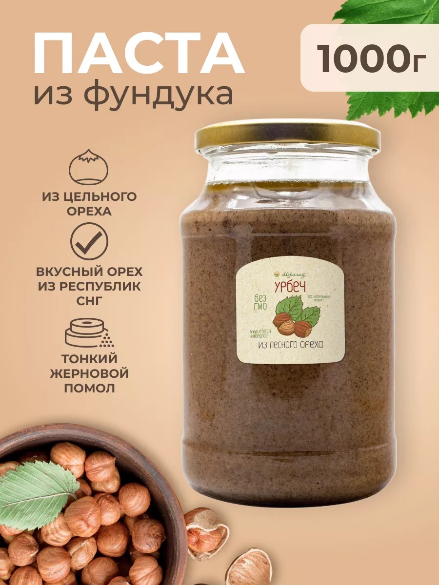 Мералад урбеч это тщательно размолотая паста, благодаря тонкому помолу на жерновах из натурального камня полезные вещества усваиваются в разы лучше. Фундук очень любим за свои вкусовые качества, при этом он является богатейшим источником растительного белка. Кальций и калий в составе помогают формированию костей, улучшают зубную эмаль, положительно влияют на сосуды и сердце. Рекомендован при высоких физических нагрузках, белок и витамин Е способствуют правильному росту мышечной массы. Обладает противоопухолевыми свойствами и в целом применяется для профилактики онкологических заболеваний. Вкус пасты раскрывается немного иначе, нежели цельный фундук, плюс в таком виде микроэлементы усваиваются должным образом. Ореховая паста является 100% натуральным продуктом, не содержащим глютен, ГМО и консерванты. Благодаря своему особому вкусу с легкой горчинкой, она делает прием пищи не только вкусным, но и полезным. Паста изготавливается из фундука, обработанного горячим воздухом без использования масла, что делает его лидером среди орехов по содержанию полезных жиров. Фундук также богат витаминами и минералами, поддерживающими хорошее настроение и повышающими производительность.