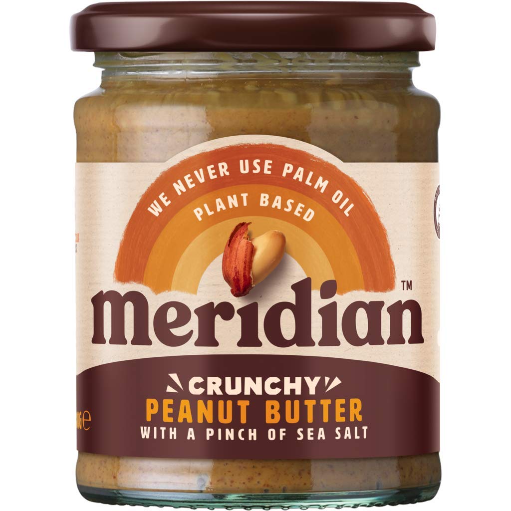 Crunchy Peanut Butter with Salt 280g (Meridian). Crunchy peanut butter with a pinch of sea salt. This crunchy peanut butter with a pinch of sea salt is a good source of energy and is packed with peanuts. Peanuts are naturally a source of protein (25 of their calories come from protein) and are perfect for maintaining a healthy diet. Meridian roasts whole peanuts in their natural skins, then crushes them with a touch of sea salt for the perfect crunchy texture. Delicious on toast, crackers, and crumpets, or added to shakes, cakes, and pastries. This vegan peanut butter is naturally gluten-free, dairy-free, and contains no added sugars or sweeteners (such as xylitol). Meridian plant-based nut and seed butters are made without palm oil and certified palm oil-free by POFCAP. The oil separation is natural and can simply be mixed in. Whole skin roasted peanuts 99 , sea salt 1 .High in protein and perfect for maintaining a healthy diet. Contains naturally occurring sugars. Roast the peanuts in their natural skins, then crush. Made with roasted peanuts and a pinch of sea salt. High in energy and full of protein. Beurre de cacahuète croustillant avec sel 280 g (Méridien). Beurre de cacahuète croustillant avec une pincée de sel de mer Ce beurre de cacahuète croustillant avec une pincée de sel de mer est une bonne source d'énergie et est rempli d'arachides. Les cacahuètes sont naturellement une source de protéines (25 de leurs calories proviennent de protéines) et sont parfaites pour maintenir une alimentation saine. Meridian rôtit les cacahuètes entières dans leur peau naturelle, puis les écrase avec une touche de sel de mer pour une texture croquante parfaite. Délicieux sur des toasts, des craquelins et des crumpets ou ajoutés aux shakes, gâteaux et pâtisseries. Ce beurre d'arachide végétalien est naturellement sans gluten, sans produits laitiers et ne contient aucun sucre ajouté ou édulcorant (comme le xylitol). Les beurres de noix et de graines à base de plantes Meridian sont fabriqués sans huile de palme et certifiés sans huile de palme par POFCAP. La séparation de l'huile est naturelle et peut simplement être mélangée. Cacahuètes grillées sur une peau entière sur 99 , sel de mer 1 .Riche en protéines et parfait pour maintenir une alimentation saine. Contient des sucres d'origine naturelle. Faites rôtir les cacahuètes dans leur peau naturelle, puis écrasez. Fabriqué avec des cacahuètes grillées et une pincée de sel de mer. Riche en énergie et plein de protéines.